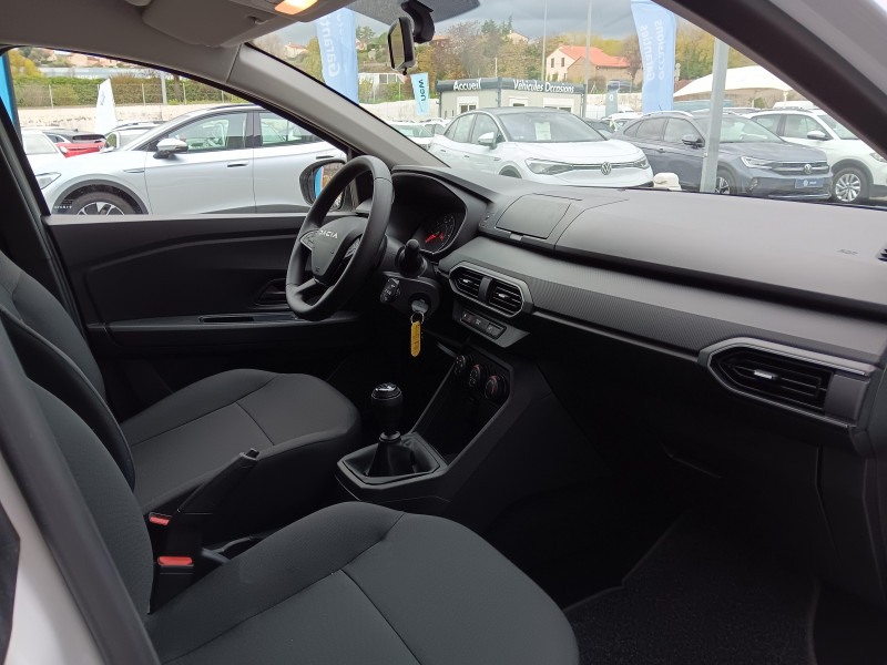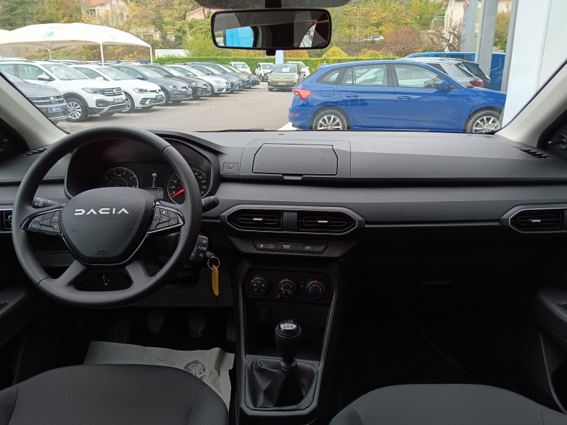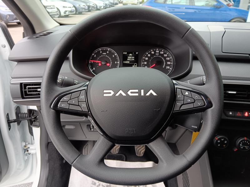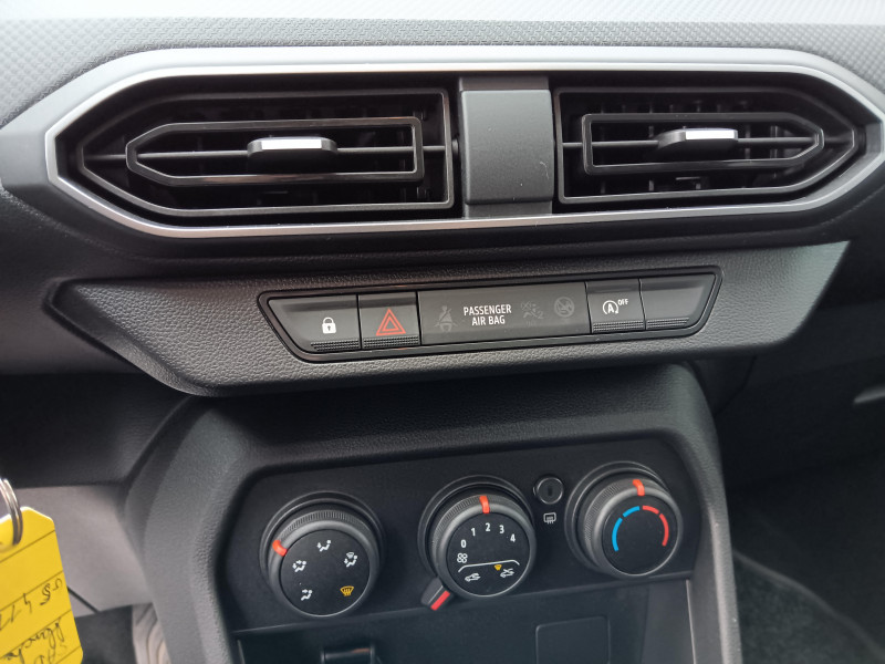 Signature lumineuse DACIA en Y à LED / Airbag latéral AV : thorax + rideau / Chauffage avec recyclage d'air / Clé 3 boutons / Console basse + rangement ouvert / Eclairage du coffre / Enjoliveur 15'' Elma / Feux AR avec signature lumineuse Y / Kit de gonflage / Lève-vitres AR manuels / Media control (Streaming audio bluetooth avec support téléphone, 2 haut-parleurs, 1 USB) / Nouvelle identité visuelle / Rappel de bouclage de ceintures / Système de freinage d'urgence autonome à des vitesses interurbaines 7-170km/h / Tableau de bord avec écran numérique 3,5'' et compteurs analogiques / Volant mousse