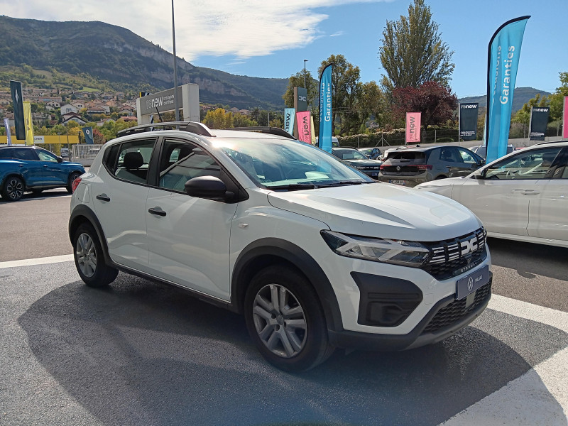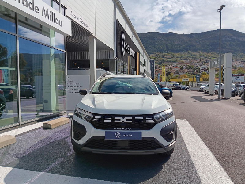 Signature lumineuse DACIA en Y à LED / Airbag latéral AV : thorax + rideau / Alternateur renforcé / BLANC GLACIER / Classe energetique C / Cluster TFT / Clé 3 boutons / Console basse + rangement ouvert / Enjoliveur 16'' Saria - Stepway / Feux AR avec signature lumineuse Y / Fonction éco-mode / Harmonie intérieure / Kit de gonflage / Lève-vitres AR manuels / Media control (Streaming audio bluetooth avec support téléphone, 2 haut-parleurs, 1 USB) / Rappel de bouclage de ceintures / Système de freinage d'urgence autonome à des vitesses interurbaines 7-170km/h / Volant mousse
