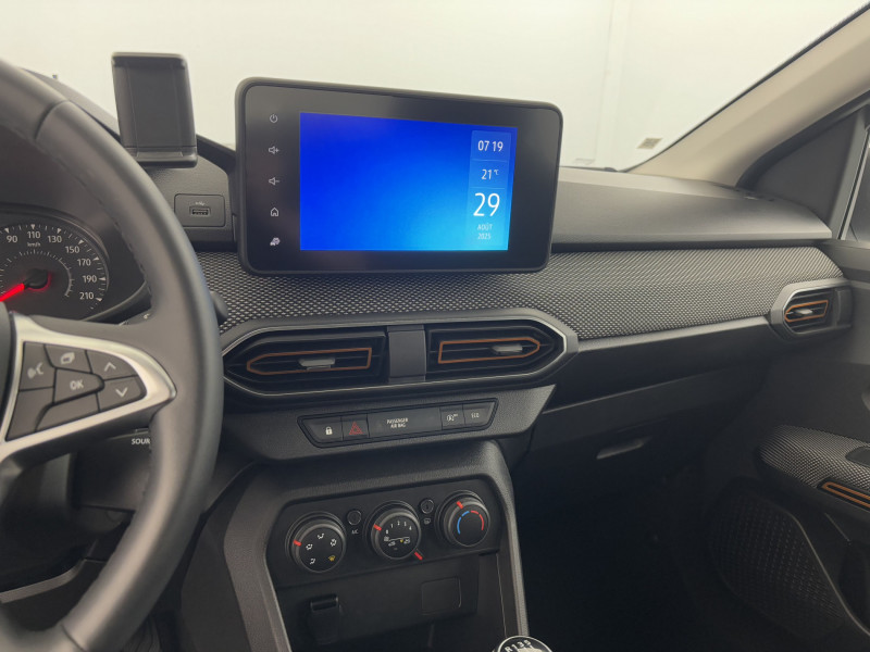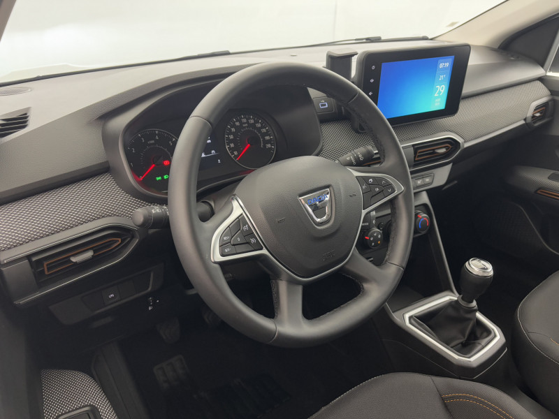 Airbag latéral AV : thorax + rideau / Alternateur renforcé / Classes énergetiques B / Clé 3 boutons / Cluster TFT / Console basse + rangement ouvert / Enjoliveur 16'' Saria - Stepway / Feux AR avec signature lumineuse Y / Fonction éco-mode / Harmonie intérieure / Kit de gonflage / Media display (écran 8'', réplication smartphone, 4 haut-parleurs, 1 port USB) / Plancher de coffre plat / Rappel de bouclage de ceintures / Rétroviseurs extérieurs ton carrosserie / Sellerie Stepway avec surpiqures / Signature lumineuse DACIA en Y à LED / Système de freinage d'urgence autonome à des vitesses interurbaines 7-170km/h / Volant Soft Feel TEP /