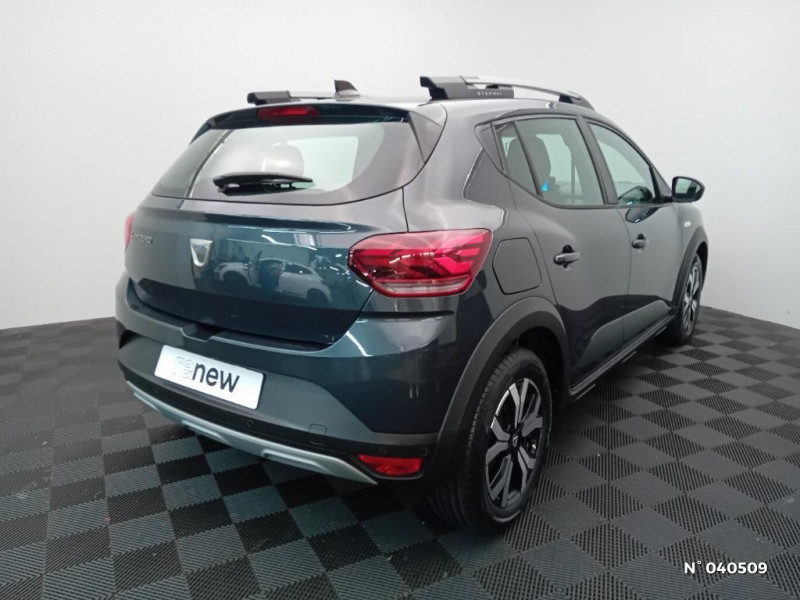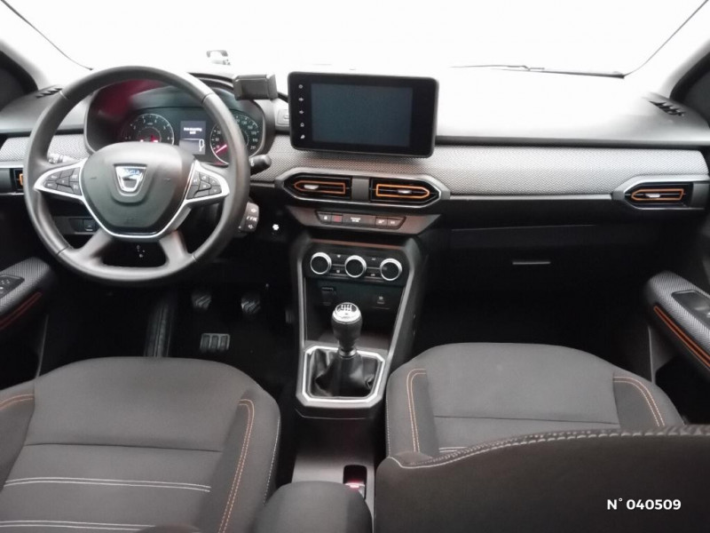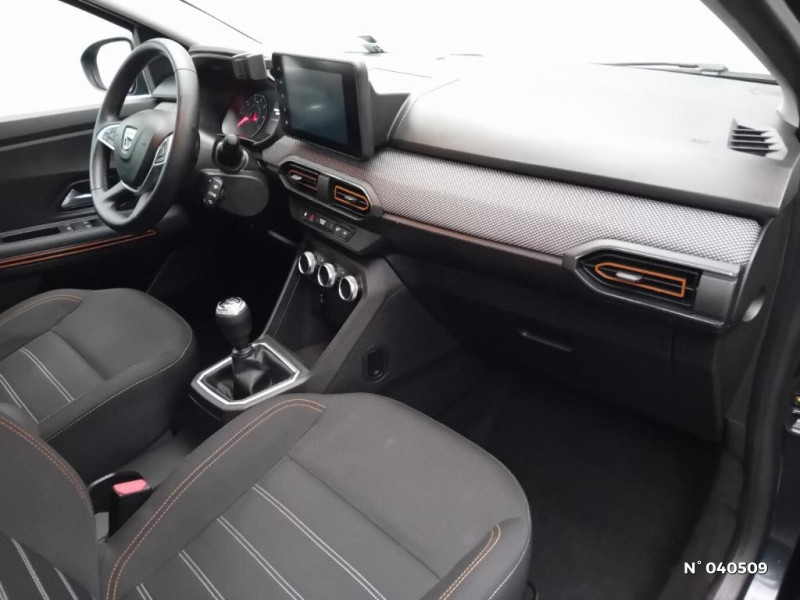 Enjoliveur 16'' Saria - Stepway / Harmonie intérieur / Phares de jour LED avec signature lumineuse Y / Projecteurs Full LED avec signature lumineuse Y / Sellerie Stepway avec surpiqures / Volant Soft Feel TEP / Airbag latéral avant : thorax + rideau / Feux arrières avec signature lumineuse Y / Système de freinage d'urgence autonome à des vitesses interurbaines 30-140km/h / Media display (écran 8'', réplication smartphone, 4 haut-parleurs, 1 port USB, 1 support téléphone) / Signature lumineuse DACIA en Y à LED / Rappel de bouclage de ceintures / Fonction éco-mode / Kit de gonflage / Rétroviseurs extérieurs ton carrosserie / Peinture opaque / Alerte d'oubli de bouclage des ceintures de sécurité / Clé 3 boutons / Console basse + rangement ouvert / Cluster TFT