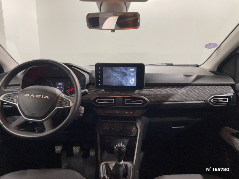 Fonction éco-mode / Kit de gonflage / Rétroviseurs extérieurs ton carrosserie / Peinture opaque / Clé 3 boutons / Console basse + rangement ouvert / Cluster TFT / Sellerie confort avec surpiqures / Volant Soft Feel TEP / Airbag latéral avant : thorax + rideau / Feux arrières avec signature lumineuse Y / Signature lumineuse DACIA en Y à LED / Rappel de bouclage de ceintures / Media display (écran 8'', réplication smartphone, 4 haut-parleurs, 1 port USB) / Système de freinage d'urgence autonome à des vitesses interurbaines 7-170km/h / Alternateur renforcé / Nouvelle identité visuelle / Enjoliveur 15'' Sorane / Roues tôle 15"