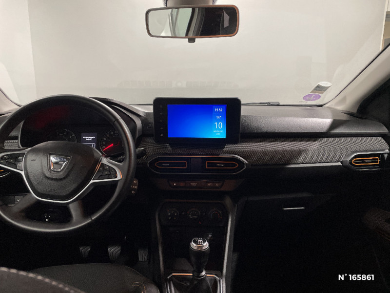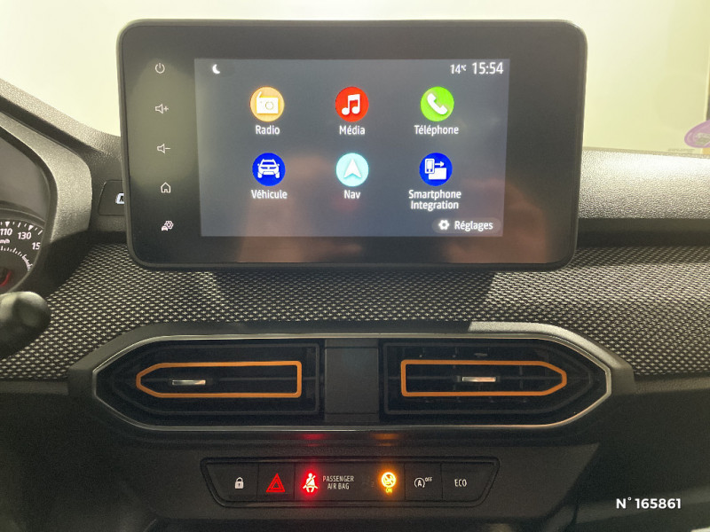 Rétroviseurs extérieurs ton carrosserie / Roues tôle 15" / Clé 3 boutons / Fonction éco-mode / Kit de gonflage / Harmonie intérieur / Sellerie confort avec surpiqures / Volant Soft Feel TEP / Airbag latéral avant : thorax + rideau / Feux arrières avec signature lumineuse Y / Signature lumineuse DACIA en Y à LED / Rappel de bouclage de ceintures / Media display (écran 8'', réplication smartphone, 4 haut-parleurs, 1 port USB) / Système de freinage d'urgence autonome à des vitesses interurbaines 7-170km/h / Classes énergetiques B / Console basse + rangement ouvert / Cluster TFT / Enjoliveur 15'' Sorane