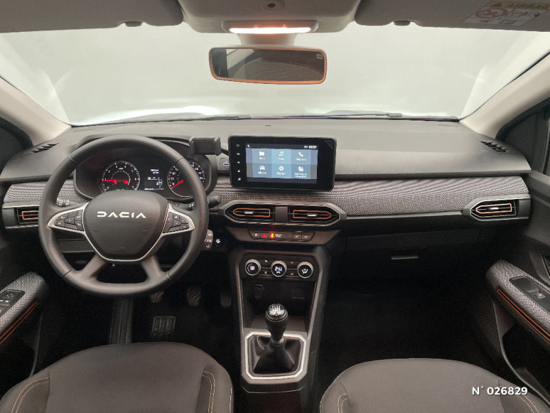 Fonction éco-mode / Rappel de bouclage de ceintures / Media display (écran 8'', réplication smartphone, 4 haut-parleurs, 1 port USB) / Système de freinage d'urgence autonome à des vitesses interurbaines 7-170km/h / Nouvelle identité visuelle / Enjoliveur 16'' Saria - Stepway / Enjoliveur 16'' Saria / Tableau de bord avec écran numérique 3,5'' et compteurs analogiques / Eclairage du coffre / Sellerie Stepway avec surpiqures / Volant Soft Feel TEP / Airbag latéral avant : thorax + rideau / Feux arrières avec signature lumineuse Y / Signature lumineuse DACIA en Y à LED / Kit de gonflage / Rétroviseurs extérieurs ton carrosserie / Clé 3 boutons / Console basse + rangement ouvert
