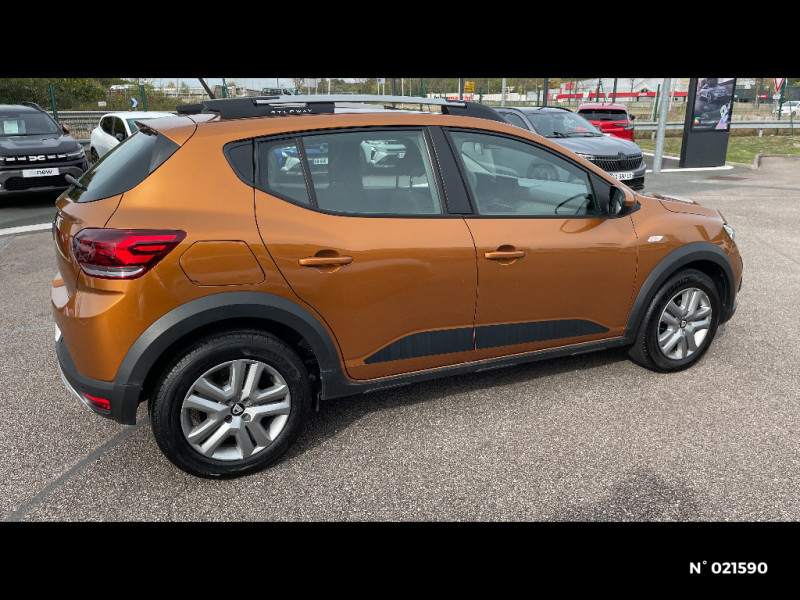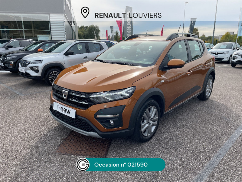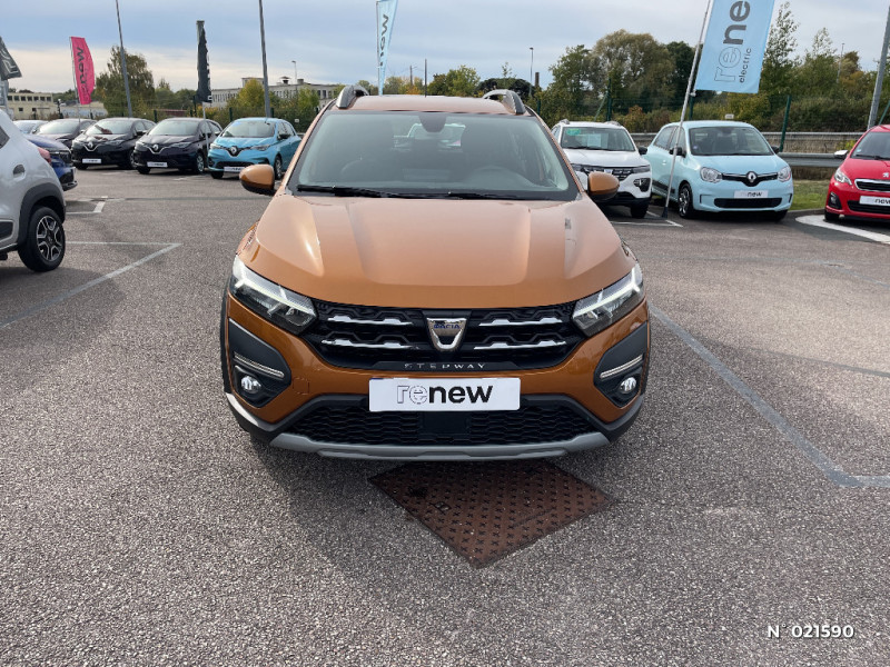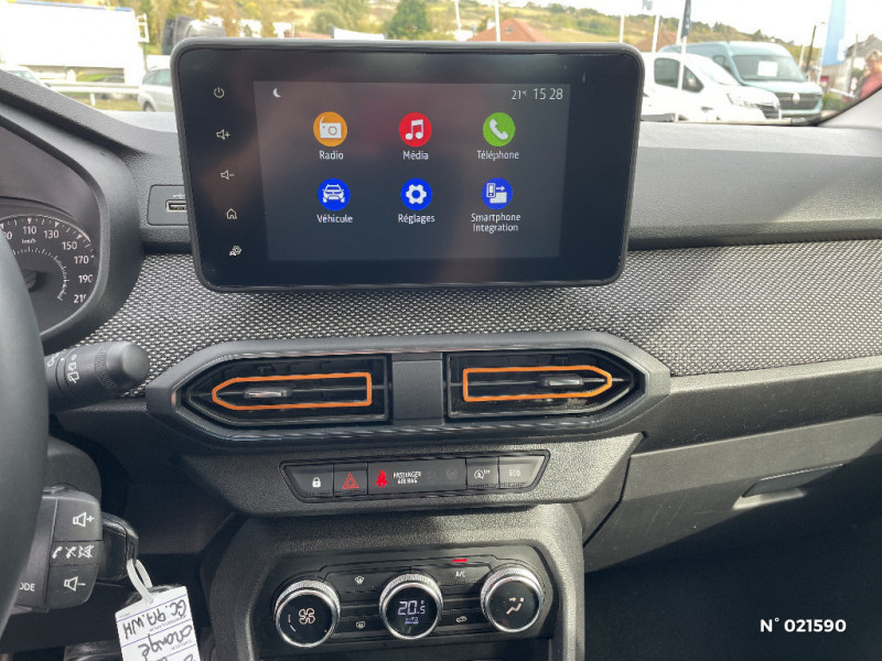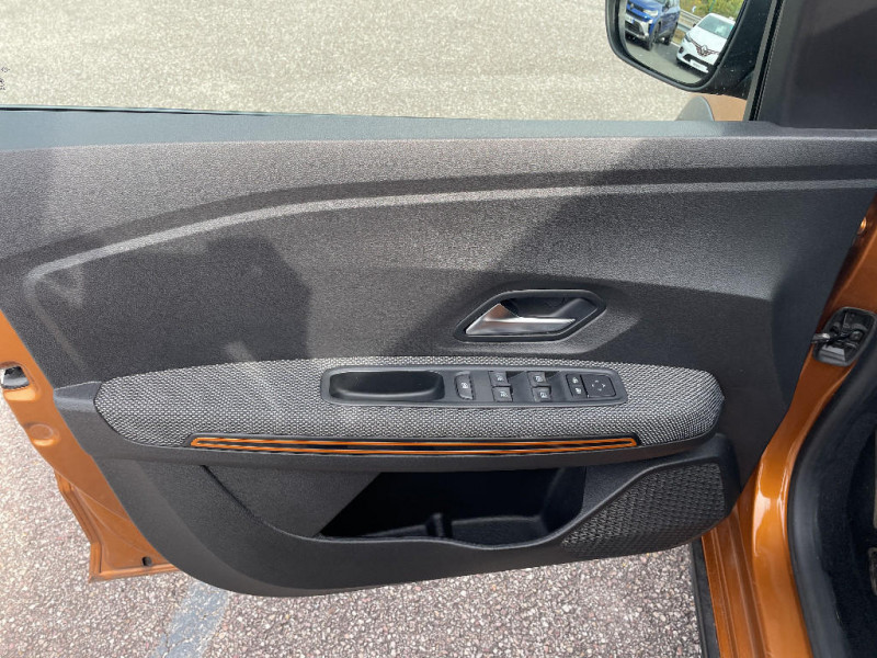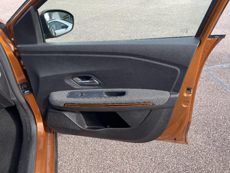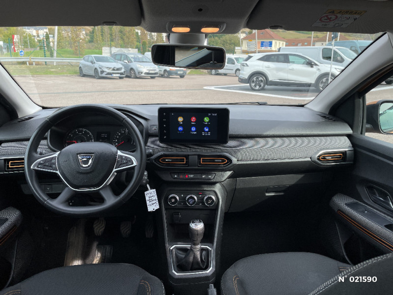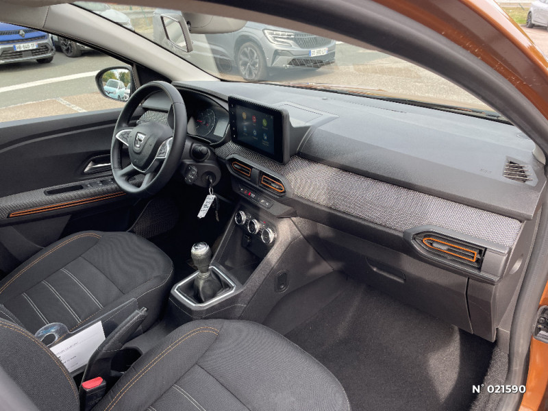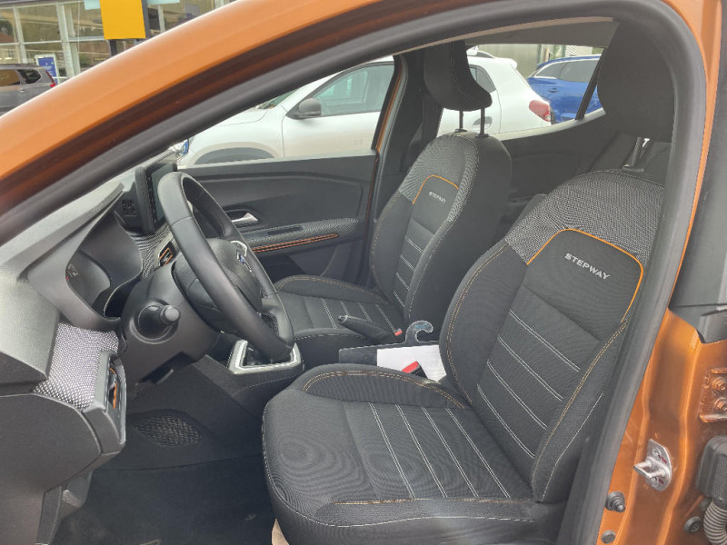 Fonction éco-mode / Volant Soft Feel TEP / Kit de gonflage / Rétroviseurs extérieurs ton carrosserie / Airbag latéral avant : thorax + rideau / Feux arrières avec signature lumineuse Y / Système de freinage d'urgence autonome à des vitesses interurbaines 30-140km/h / Media display (écran 8'', réplication smartphone, 4 haut-parleurs, 1 port USB, 1 support téléphone) / Signature lumineuse DACIA en Y à LED / Rappel de bouclage de ceintures / Plancher de coffre plat / Media display (écran 8'', réplication smartphone, 4 haut-parleurs, 1 port USB) / Système de freinage d'urgence autonome à des vitesses interurbaines 7-170km/h / Alerte d'oubli de bouclage des ceintures de sécurité / Clé 3 boutons / Console basse + rangement ouvert / Cluster TFT / Enjoliveur 16'' Saria - Stepway / Harmonie intérieur / Sellerie Stepway avec surpiqures