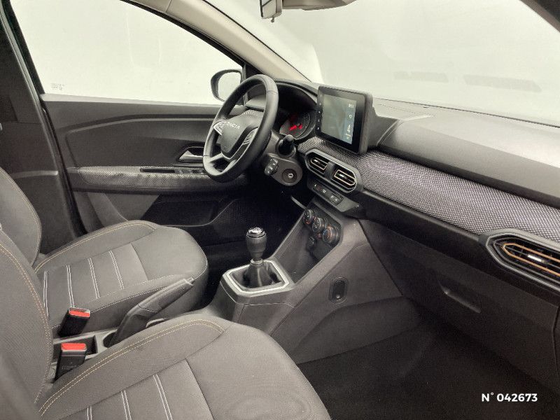 ESP+ASR / Fonction éco-mode / Eclairage du coffre / Kit de gonflage / Rétroviseurs extérieurs ton carrosserie / Boîte de vitesse manuelle 6 / Peinture opaque / Clé 3 boutons / Console basse + rangement ouvert / Sellerie Stepway avec surpiqures / Volant Soft Feel TEP / Airbag latéral avant : thorax + rideau / Feux arrières avec signature lumineuse Y / Signature lumineuse DACIA en Y à LED / Rappel de bouclage de ceintures / Tableau de bord avec écran numérique 3,5'' et compteurs analogiques / Système de freinage d'urgence avancé (pieton, deux-rorues et intersection) / Prédisposition Ethylotest / Alerte franchissement de ligne et assistant maintien dans la voie / Enjoliveur 16'' ATARA / Enjoliveur 16'' ATARA DARK / Media Display (écran tactile 8'' sans navigation, radio, réplication smartphone USB, 4 haut-parleurs audiostreaming Bluetooth, satellite de commandes au volant, 1 prise USB-A et 1 prise USB-C) / Boîte de vitesse automatique