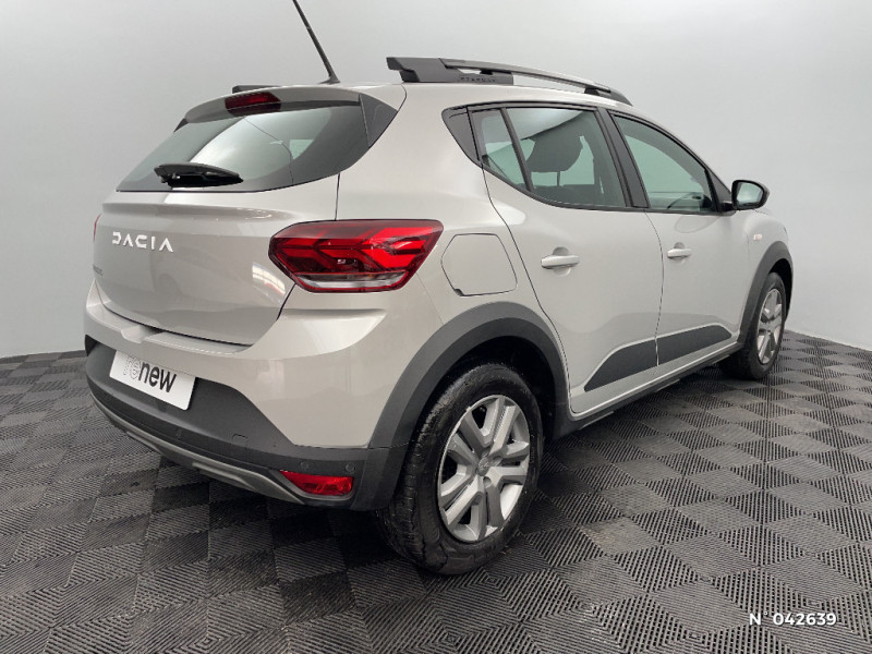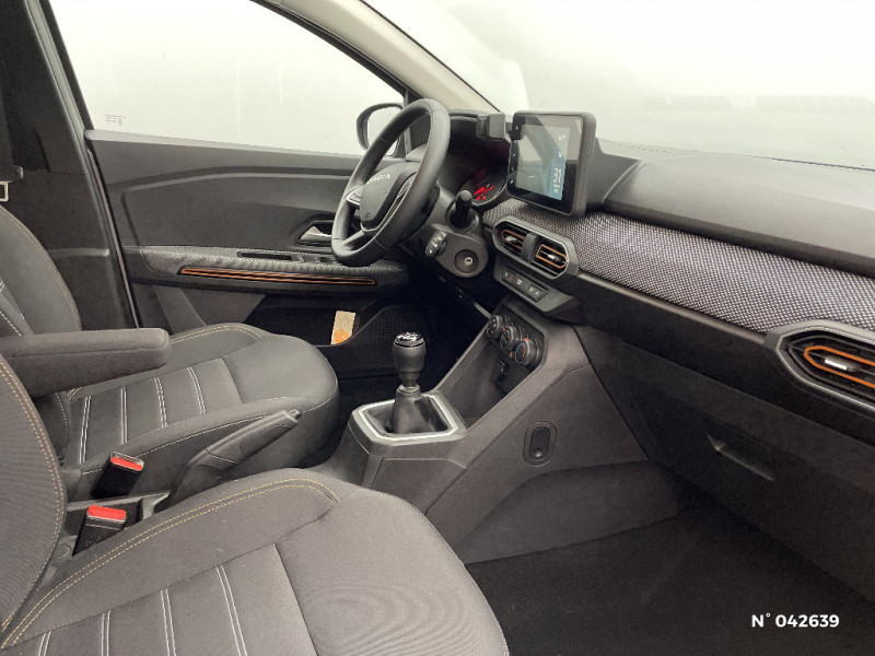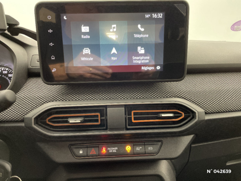Clé 3 boutons / Console basse + rangement ouvert / Cluster TFT / Sellerie Stepway avec surpiqures / Volant Soft Feel TEP / Airbag latéral avant : thorax + rideau / Feux arrières avec signature lumineuse Y / Signature lumineuse DACIA en Y à LED / Rappel de bouclage de ceintures / Plancher de coffre plat / Media display (écran 8'', réplication smartphone, 4 haut-parleurs, 1 port USB) / Système de freinage d'urgence autonome à des vitesses interurbaines 7-170km/h / Nouvelle identité visuelle / Enjoliveur 16'' Saria - Stepway / Kit de gonflage / Fonction éco-mode / Enjoliveur 16'' Saria / Peinture opaque