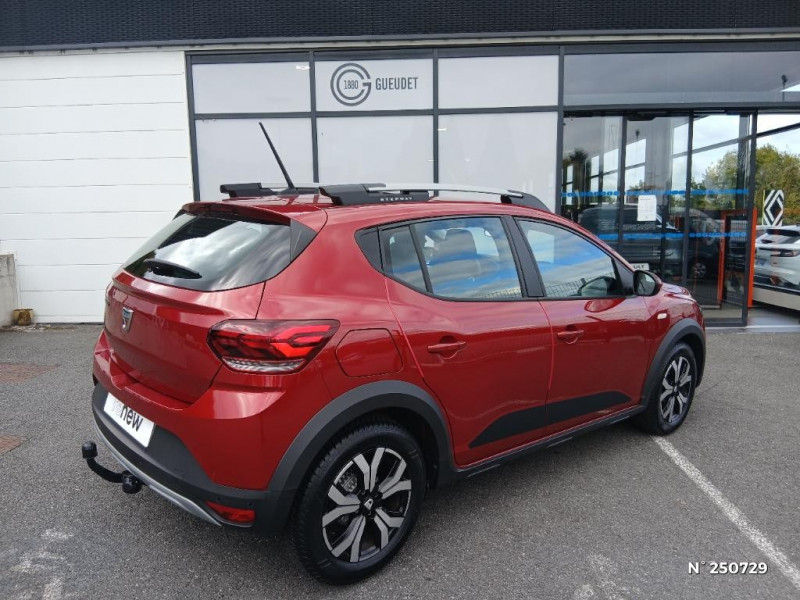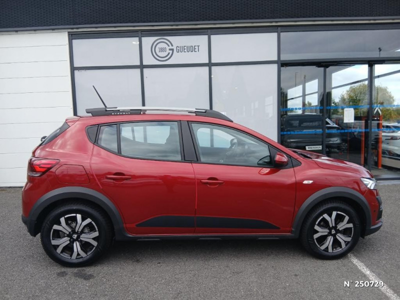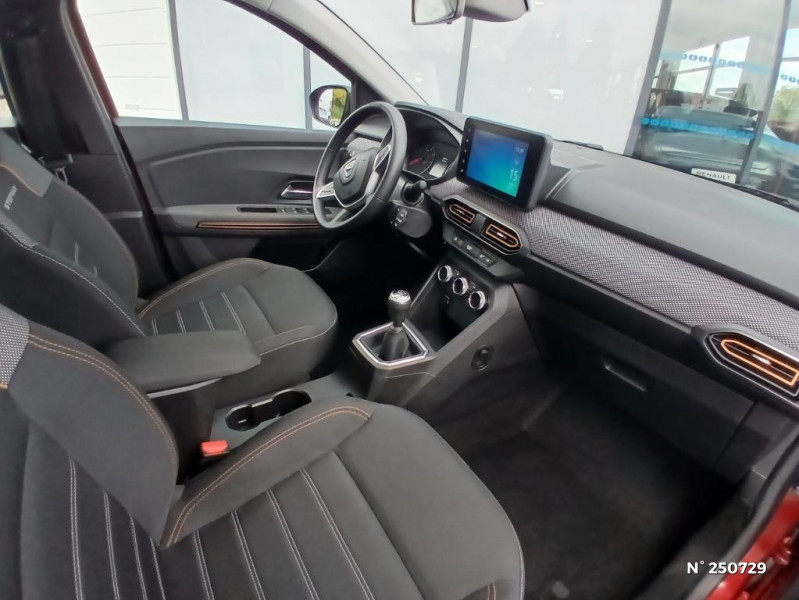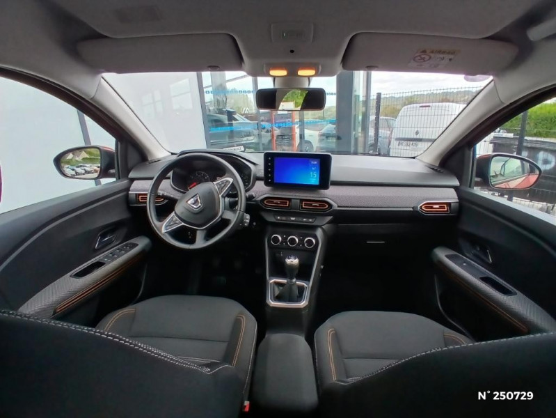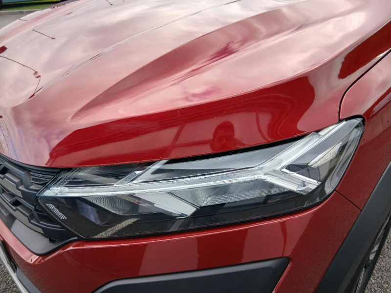 Alerte d'oubli de bouclage des ceintures de sécurité / Clé 3 boutons / Console basse + rangement ouvert / Cluster TFT / Enjoliveur 16'' Saria - Stepway / Harmonie intérieur / Phares de jour LED avec signature lumineuse Y / Projecteurs Full LED avec signature lumineuse Y / Sellerie Stepway avec surpiqures / Volant Soft Feel TEP / Feux arrières avec signature lumineuse Y / Système de freinage d'urgence autonome à des vitesses interurbaines 30-140km/h / Media display (écran 8'', réplication smartphone, 4 haut-parleurs, 1 port USB, 1 support téléphone) / Signature lumineuse DACIA en Y à LED / Rappel de bouclage de ceintures / Airbag latéral avant : thorax + rideau / Rétroviseurs extérieurs ton carrosserie / Peinture opaque / Fonction éco-mode / Kit de gonflage