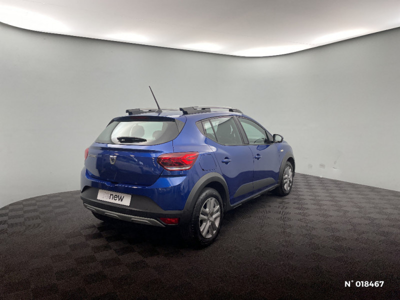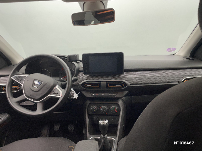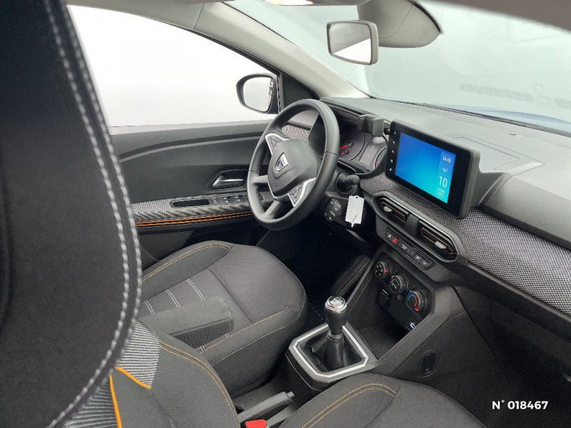 Airbag latéral avant : thorax + rideau / Feux arrières avec signature lumineuse Y / Signature lumineuse DACIA en Y à LED / Rappel de bouclage de ceintures / Plancher de coffre plat / Media display (écran 8'', réplication smartphone, 4 haut-parleurs, 1 port USB) / Système de freinage d'urgence autonome à des vitesses interurbaines 7-170km/h / Nouvelle identité visuelle / Enjoliveur 16'' Saria - Stepway / Enjoliveur 16'' Saria / Clé 3 boutons / Console basse + rangement ouvert / Cluster TFT / Sellerie Stepway avec surpiqures / Volant Soft Feel TEP / Fonction éco-mode / Kit de gonflage