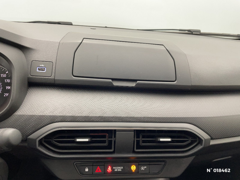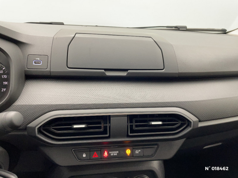 Kit de gonflage / Lève-vitres AR manuels / Chauffage avec recyclage d'air / Clé 3 boutons / Console basse + rangement ouvert / Cluster TFT / Sellerie essentiel / Media control (Streaming audio bluetooth avec support téléphone, 2 haut-parleurs, 1 USB) / Airbag latéral avant : thorax + rideau / Feux arrières avec signature lumineuse Y / Signature lumineuse DACIA en Y à LED / Rappel de bouclage de ceintures / Système de freinage d'urgence autonome à des vitesses interurbaines 7-170km/h / Nouvelle identité visuelle / Enjoliveur 15'' Elma / Roues tôle 15" / Volant mousse