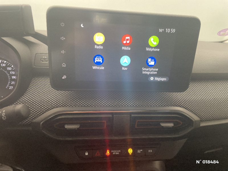 Kit de gonflage / Rétroviseurs extérieurs ton carrosserie / Fonction éco-mode / Peinture opaque / Alerte d'oubli de bouclage des ceintures de sécurité / Clé 3 boutons / Console basse + rangement ouvert / Cluster TFT / Enjoliveur 16'' Saria - Stepway / Harmonie intérieur / Sellerie Stepway avec surpiqures / Volant Soft Feel TEP / Airbag latéral avant : thorax + rideau / Feux arrières avec signature lumineuse Y / Système de freinage d'urgence autonome à des vitesses interurbaines 30-140km/h / Media display (écran 8'', réplication smartphone, 4 haut-parleurs, 1 port USB, 1 support téléphone) / Signature lumineuse DACIA en Y à LED / Rappel de bouclage de ceintures / Plancher de coffre plat / Media display (écran 8'', réplication smartphone, 4 haut-parleurs, 1 port USB) / Système de freinage d'urgence autonome à des vitesses interurbaines 7-170km/h / Classe energetique C