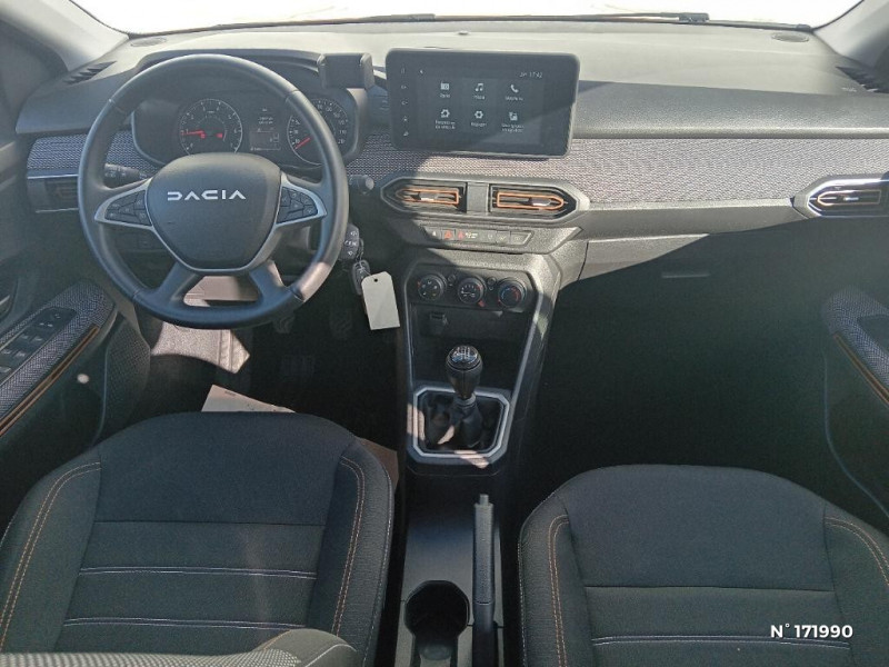 Cluster TFT / Sellerie Stepway avec surpiqures / Volant Soft Feel TEP / Airbag latéral avant : thorax + rideau / Feux arrières avec signature lumineuse Y / Signature lumineuse DACIA en Y à LED / Fonction éco-mode / Kit de gonflage / Peinture opaque / Clé 3 boutons / Console basse + rangement ouvert / Rappel de bouclage de ceintures / Plancher de coffre plat / Media display (écran 8'', réplication smartphone, 4 haut-parleurs, 1 port USB) / Système de freinage d'urgence autonome à des vitesses interurbaines 7-170km/h / Nouvelle identité visuelle / Enjoliveur 16'' Saria - Stepway / Enjoliveur 16'' Saria