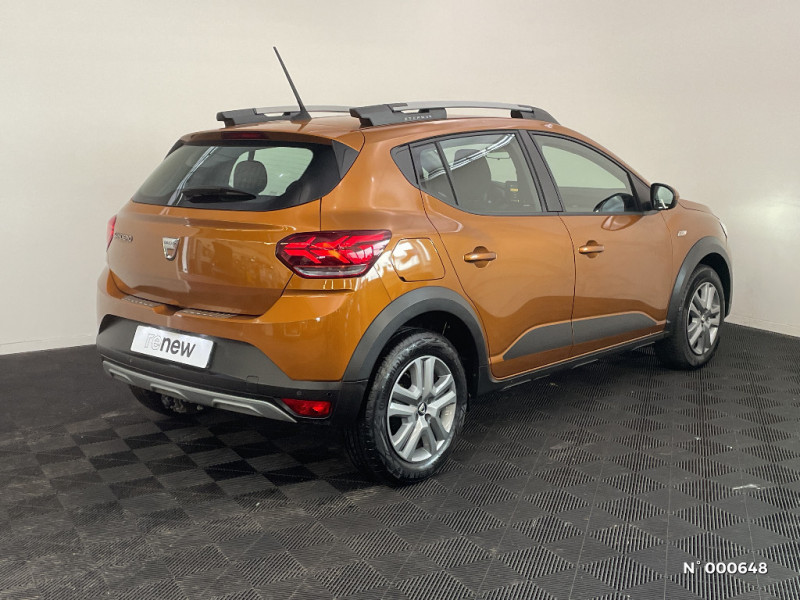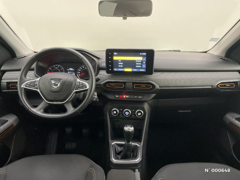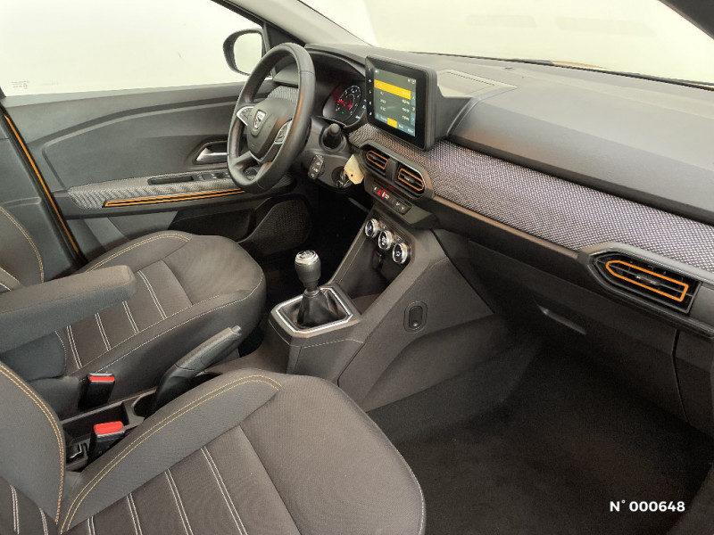 Projecteurs Full LED avec signature lumineuse Y / Sellerie Stepway avec surpiqures / Volant Soft Feel TEP / Airbag latéral avant : thorax + rideau / Feux arrières avec signature lumineuse Y / Système de freinage d'urgence autonome à des vitesses interurbaines 30-140km/h / Media display (écran 8'', réplication smartphone, 4 haut-parleurs, 1 port USB, 1 support téléphone) / Signature lumineuse DACIA en Y à LED / Rappel de bouclage de ceintures / Alerte d'oubli de bouclage des ceintures de sécurité / Clé 3 boutons / Console basse + rangement ouvert / Cluster TFT / Enjoliveur 16'' Saria - Stepway / Harmonie intérieur / Phares de jour LED avec signature lumineuse Y / Fonction éco-mode / Kit de gonflage / Rétroviseurs extérieurs ton carrosserie / Peinture opaque