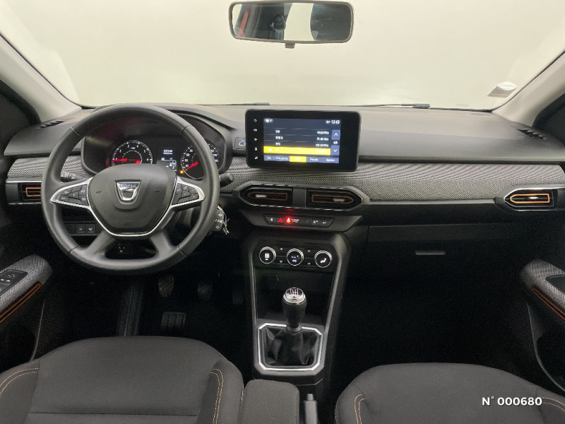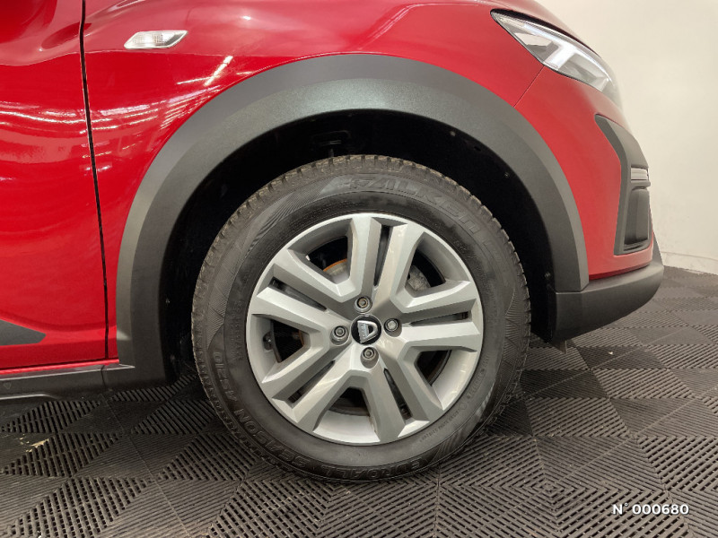 Fonction éco-mode / Kit de gonflage / Rétroviseurs extérieurs ton carrosserie / Peinture opaque / Alerte d'oubli de bouclage des ceintures de sécurité / Clé 3 boutons / Console basse + rangement ouvert / Cluster TFT / Enjoliveur 16'' Saria - Stepway / Harmonie intérieur / Phares de jour LED avec signature lumineuse Y / Projecteurs Full LED avec signature lumineuse Y / Sellerie Stepway avec surpiqures / Volant Soft Feel TEP / Airbag latéral avant : thorax + rideau / Feux arrières avec signature lumineuse Y / Système de freinage d'urgence autonome à des vitesses interurbaines 30-140km/h / Media display (écran 8'', réplication smartphone, 4 haut-parleurs, 1 port USB, 1 support téléphone) / Signature lumineuse DACIA en Y à LED / Rappel de bouclage de ceintures