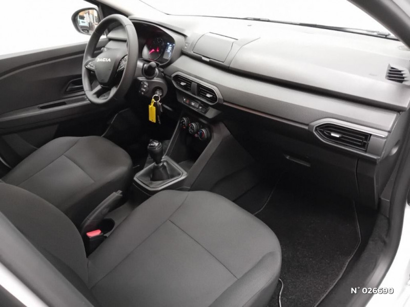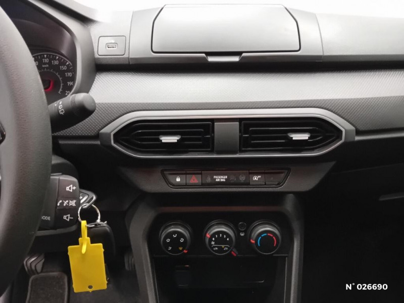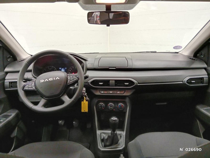 Kit de gonflage / Lève-vitres AR manuels / Chauffage avec recyclage d'air / Clé 3 boutons / Console basse + rangement ouvert / Cluster TFT / Sellerie essentiel / Media control (Streaming audio bluetooth avec support téléphone, 2 haut-parleurs, 1 USB) / Airbag latéral avant : thorax + rideau / Feux arrières avec signature lumineuse Y / Signature lumineuse DACIA en Y à LED / Rappel de bouclage de ceintures / Système de freinage d'urgence autonome à des vitesses interurbaines 7-170km/h / Nouvelle identité visuelle / Enjoliveur 15'' Elma / Roues tôle 15" / Volant mousse