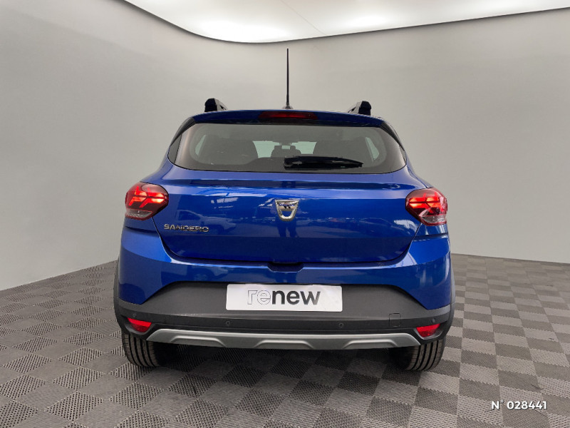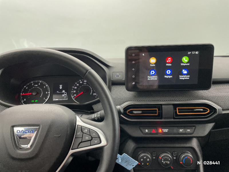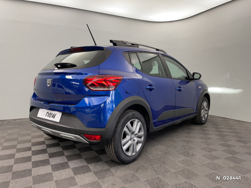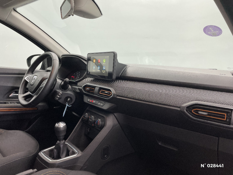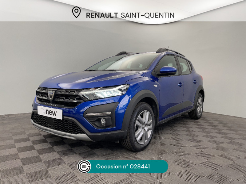 Kit de gonflage / Rétroviseurs extérieurs ton carrosserie / Peinture opaque / Clé 3 boutons / Console basse + rangement ouvert / Cluster TFT / Enjoliveur 16'' Saria - Stepway / Harmonie intérieur / Sellerie Stepway avec surpiqures / Volant Soft Feel TEP / Airbag latéral avant : thorax + rideau / Feux arrières avec signature lumineuse Y / Signature lumineuse DACIA en Y à LED / Rappel de bouclage de ceintures / Plancher de coffre plat / Media display (écran 8'', réplication smartphone, 4 haut-parleurs, 1 port USB) / Fonction éco-mode / Système de freinage d'urgence autonome à des vitesses interurbaines 7-170km/h / Alternateur renforcé / Classes énergetiques B