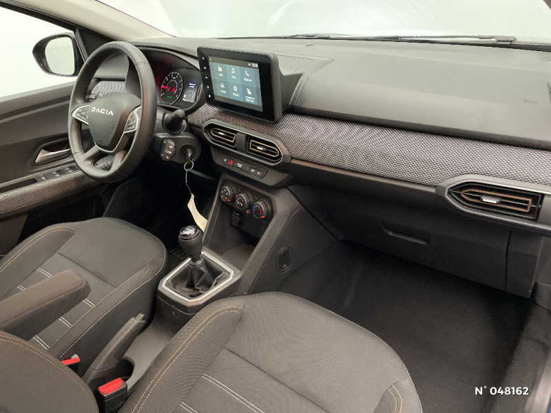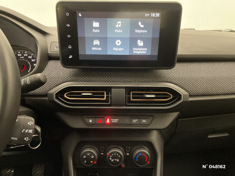 Fonction éco-mode / Eclairage du coffre / Kit de gonflage / Rétroviseurs extérieurs ton carrosserie / Clé 3 boutons / Console basse + rangement ouvert / Sellerie Stepway avec surpiqures / Volant Soft Feel TEP / Airbag latéral avant : thorax + rideau / Feux arrières avec signature lumineuse Y / Signature lumineuse DACIA en Y à LED / Rappel de bouclage de ceintures / Nouvelle identité visuelle / Tableau de bord avec écran numérique 3,5'' et compteurs analogiques / Système de freinage d'urgence avancé (pieton, deux-rorues et intersection) / Prédisposition Ethylotest / Alerte franchissement de ligne et assistant maintien dans la voie / Enjoliveur 16'' ATARA DARK / Media Display (écran tactile 8'' sans navigation, radio, réplication smartphone USB, 4 haut-parleurs audiostreaming Bluetooth, satellite de commandes au volant, 1 prise USB-A et 1 prise USB-C)