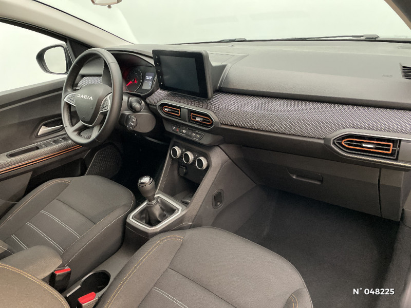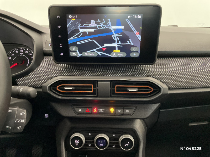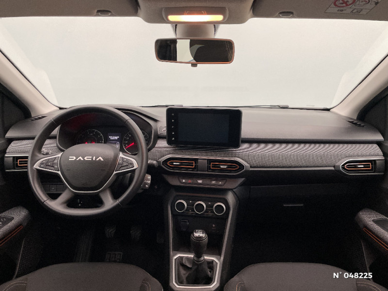 Fonction éco-mode / Kit de gonflage / Peinture opaque / Cluster TFT / Sellerie Stepway avec surpiqures / Volant Soft Feel TEP / Cartographie Europe de l'Ouest / Airbag latéral avant : thorax + rideau / Feux arrières avec signature lumineuse Y / Signature lumineuse DACIA en Y à LED / Rappel de bouclage de ceintures / Plancher de coffre plat / Media NAV (écran 8'' avec réplication, navigation, 6 haut-parleurs, 2 USB) / Console semi-haute + rangement fermé avec accoudoir / Système de freinage d'urgence autonome à des vitesses interurbaines 7-170km/h / Alternateur renforcé / Nouvelle identité visuelle / Mise à jour gratuite pendant 3 ans de la cartographie / Jantes 16'' Mahalia diamantée noir