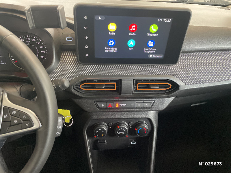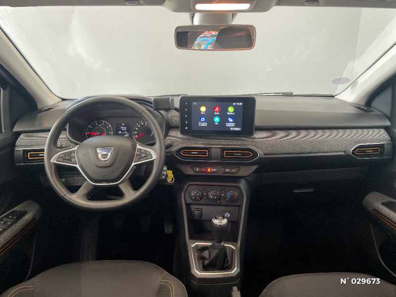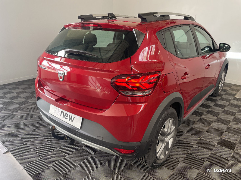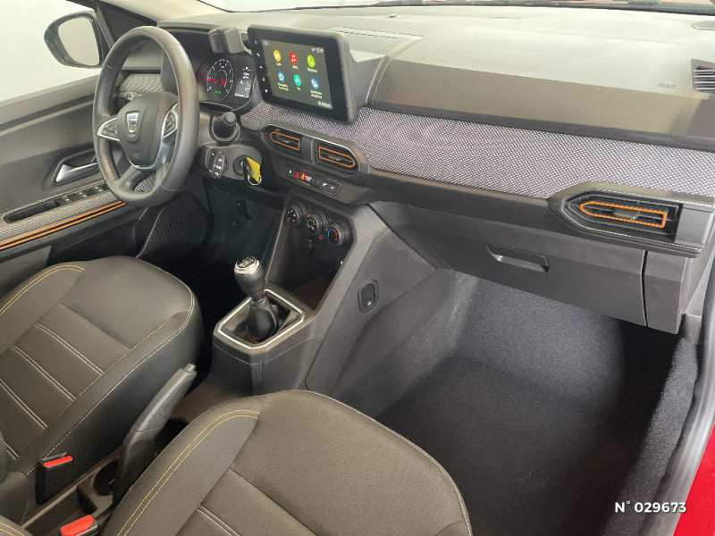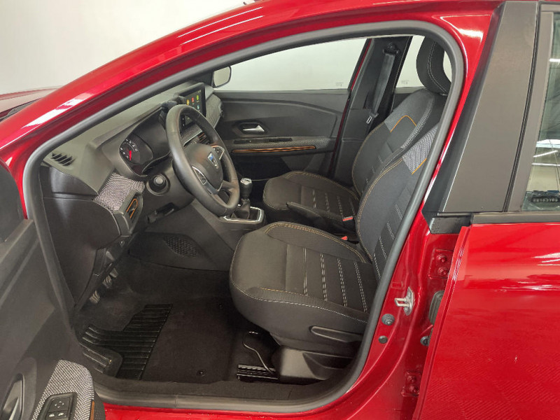 Fonction éco-mode / Kit de gonflage / Rétroviseurs extérieurs ton carrosserie / Peinture opaque / Clé 3 boutons / Console basse + rangement ouvert / Cluster TFT / Enjoliveur 16'' Saria - Stepway / Harmonie intérieur / Sellerie Stepway avec surpiqures / Volant Soft Feel TEP / Airbag latéral avant : thorax + rideau / Feux arrières avec signature lumineuse Y / Signature lumineuse DACIA en Y à LED / Rappel de bouclage de ceintures / Plancher de coffre plat / Media display (écran 8'', réplication smartphone, 4 haut-parleurs, 1 port USB) / Système de freinage d'urgence autonome à des vitesses interurbaines 7-170km/h / Alternateur renforcé / Classes énergetiques B