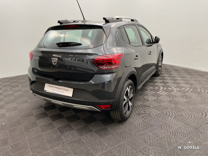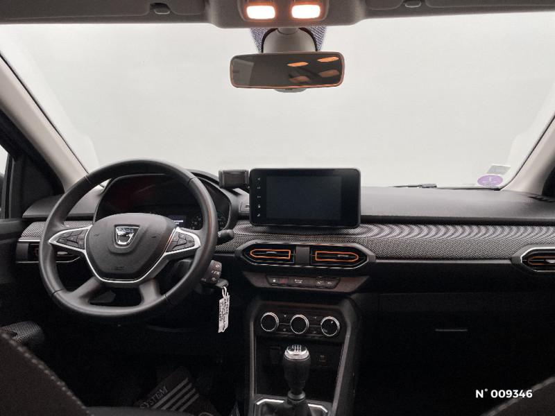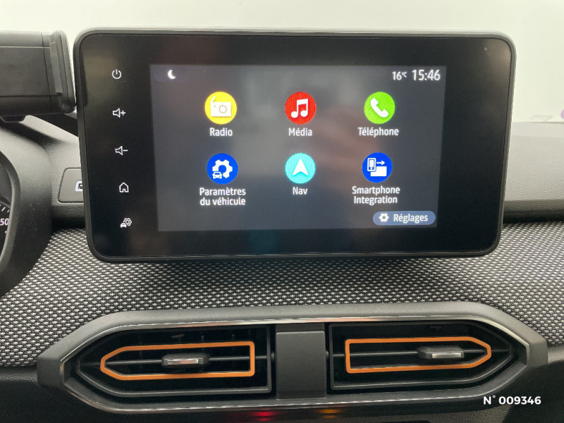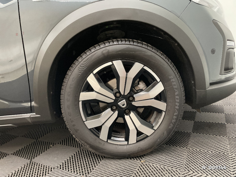 Volant Soft Feel TEP / Airbag latéral AV : thorax + rideau / Alerte d'oubli de bouclage des ceintures de sécurité / Clé 3 boutons / Cluster TFT / Console basse + rangement ouvert / Enjoliveur 16'' Saria - Stepway / Feux AR avec signature lumineuse Y / Fonction éco-mode / Harmonie intérieure / Kit de gonflage / Media display (écran 8'', réplication smartphone, 4 haut-parleurs, 1 port USB, 1 support téléphone) / Peinture opaque / Phares de jour LED avec signature lumineuse Y / Projecteurs Full LED avec signature lumineuse Y / Rappel de bouclage de ceintures / Rétroviseurs extérieurs ton carrosserie / Sellerie Stepway avec surpiqures / Signature lumineuse DACIA en Y à LED / Système de freinage d'urgence autonome à des vitesses interurbaines 30-140km/h