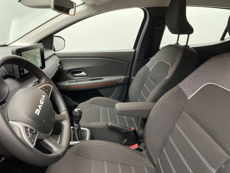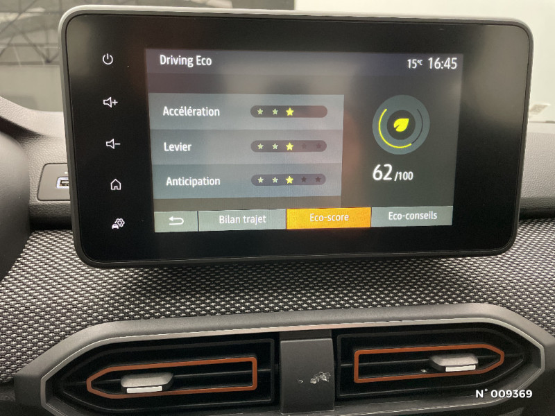 Console basse + rangement ouvert / Enjoliveur 16'' Saria - Stepway / Feux AR avec signature lumineuse Y / Fonction éco-mode / Harmonie intérieure / Kit de gonflage / Media display (écran 8'', réplication smartphone, 4 haut-parleurs, 1 port USB) / Media display (écran 8'', réplication smartphone, 4 haut-parleurs, 1 port USB, 1 support téléphone) / Peinture opaque / Plancher de coffre plat / Rappel de bouclage de ceintures / Airbag latéral AV : thorax + rideau / Alerte d'oubli de bouclage des ceintures de sécurité / Alternateur renforcé / Rétroviseurs extérieurs ton carrosserie / Sellerie Stepway avec surpiqures / Signature lumineuse DACIA en Y à LED / Système de freinage d'urgence autonome à des vitesses interurbaines 30-140km/h / Système de freinage d'urgence autonome à des vitesses interurbaines 7-170km/h / Volant Soft Feel TEP / Classe energetique C / Clé 3 boutons / Cluster TFT