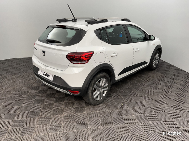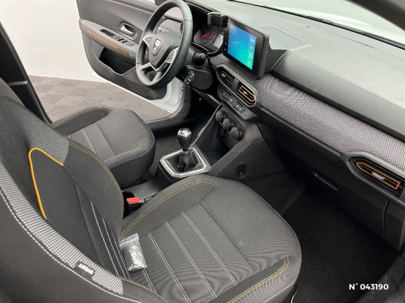 Clé 3 boutons / Console basse + rangement ouvert / Cluster TFT / Enjoliveur 16'' Saria - Stepway / Harmonie intérieur / Sellerie Stepway avec surpiqures / Volant Soft Feel TEP / Airbag latéral avant : thorax + rideau / Feux arrières avec signature lumineuse Y / Système de freinage d'urgence autonome à des vitesses interurbaines 30-140km/h / Media display (écran 8'', réplication smartphone, 4 haut-parleurs, 1 port USB, 1 support téléphone) / Signature lumineuse DACIA en Y à LED / Rappel de bouclage de ceintures / Plancher de coffre plat / Fonction éco-mode / Kit de gonflage / Rétroviseurs extérieurs ton carrosserie