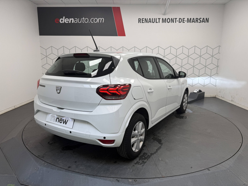 Airbag latéral AV : thorax + rideau / Alternateur renforcé / Classes énergetiques B / Clé 3 boutons / Cluster TFT / Console basse + rangement ouvert / Enjoliveur 15'' Sorane / Feux AR avec signature lumineuse Y / Harmonie intérieure / Kit de gonflage / Media display (écran 8'', réplication smartphone, 4 haut-parleurs, 1 port USB) / Rappel de bouclage de ceintures / Rétroviseurs extérieurs ton carrosserie / Roues tôle 15" / Sellerie Confort avec surpiqures / Signature lumineuse DACIA en Y à LED / Système de freinage d'urgence autonome à des vitesses interurbaines 7-170km/h / Volant Soft Feel TEP