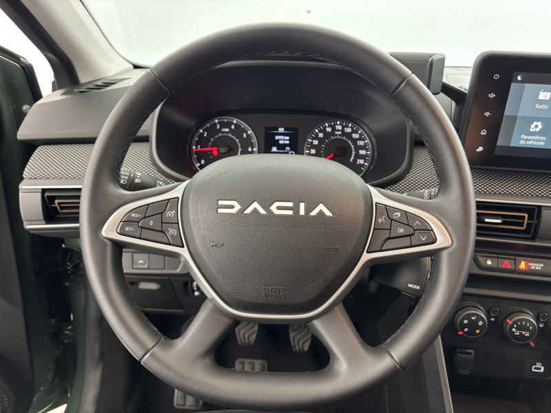 Signature lumineuse DACIA en Y à LED: / Airbag latéral AV : thorax + rideau: / Barres de toit modulables: / Clé 3 boutons: / Console basse + rangement ouvert: / Enjoliveur 16'' Saria - Stepway: / Feux AR avec signature lumineuse Y: / Fonction éco-mode: / Kit de gonflage: / Media display (écran 8'', réplication smartphone, 4 haut-parleurs, 1 port USB): / Nouvelle identité visuelle: / Rappel de bouclage de ceintures: / Système de freinage d'urgence autonome à des vitesses interurbaines 7-170km/h: / Volant Soft Feel TEP: / Sellerie Stepway avec surpiqures: /