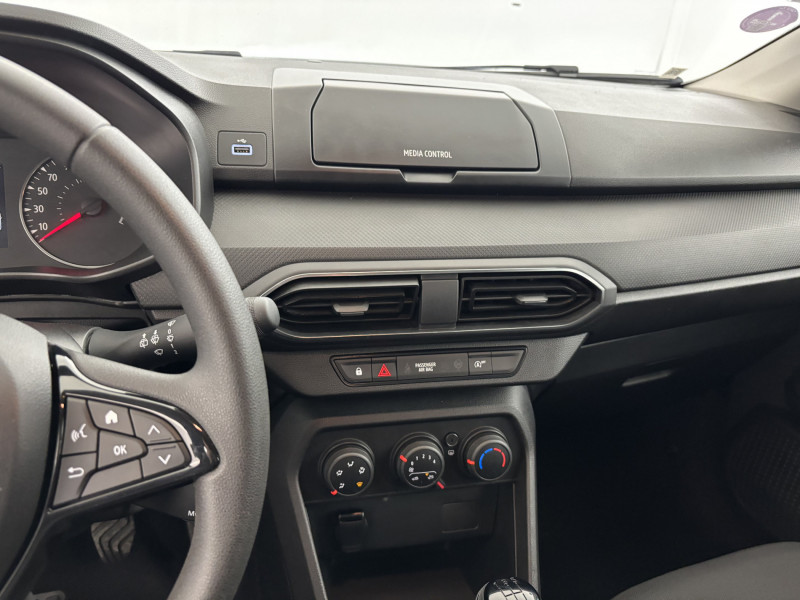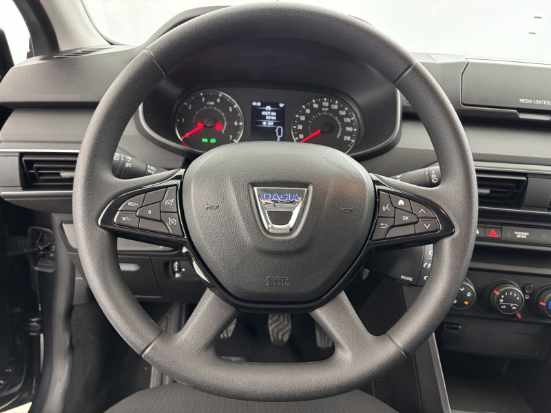 Signature lumineuse DACIA en Y à LED: / Airbag latéral AV : thorax + rideau: / Alerte d'oubli de bouclage des ceintures de sécurité: / Chauffage avec recyclage d'air: / Cluster TFT: / Clé 3 boutons: / Console basse + rangement ouvert: / Enjoliveur 15'' Sorane: / Feux AR avec signature lumineuse Y: / Harmonie intérieure: / Kit de gonflage: / Media control (Streaming audio bluetooth avec support téléphone, 2 haut-parleurs, 1 USB): / Rappel de bouclage de ceintures: / Roues tôle 15": / Système de freinage d'urgence autonome à des vitesses interurbaines 30-140km/h: / Volant mousse: / Sellerie Essentiel: /