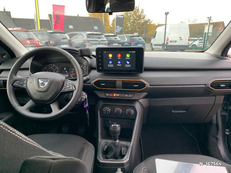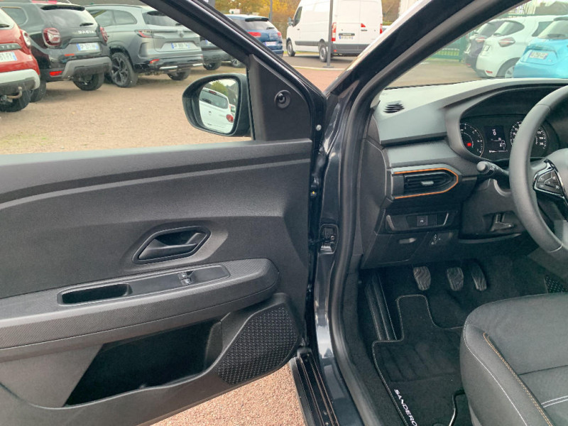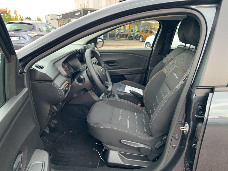 Harmonie intérieure / Phares de jour LED avec signature lumineuse Y / Projecteurs Full LED avec signature lumineuse Y / Sellerie Stepway avec surpiqures / Media control (Streaming audio bluetooth avec support téléphone, 2 haut-parleurs, 1 USB) / Airbag latéral avant : thorax + rideau / Feux arrières avec signature lumineuse Y / Système de freinage d'urgence autonome à des vitesses interurbaines 30-140km/h / Signature lumineuse DACIA en Y à LED / Rappel de bouclage de ceintures / Barres de toit longitudinales / Volant mousse / Fonction éco-mode / Kit de gonflage / Peinture opaque / Alerte d'oubli de bouclage des ceintures de sécurité / Clé 3 boutons / Console basse + rangement ouvert / Cluster TFT / Enjoliveur 16'' Saria - Stepway