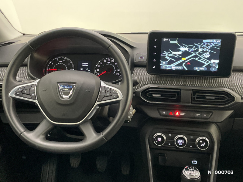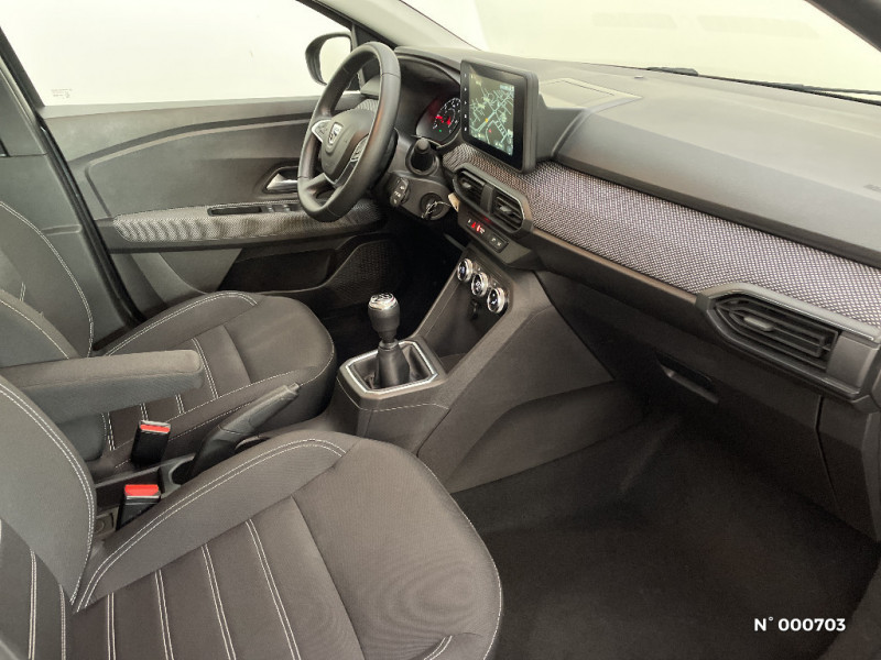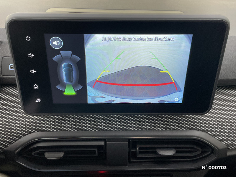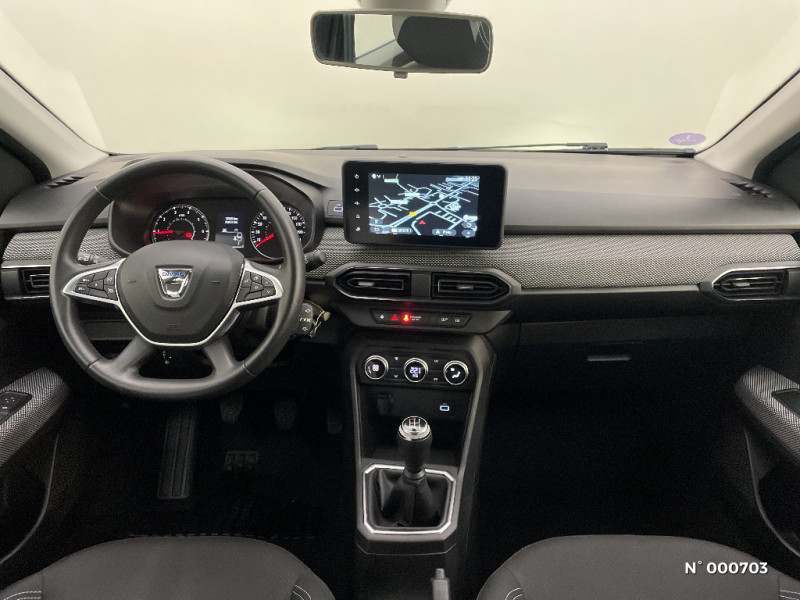 Kit de gonflage / Rétroviseurs extérieurs ton carrosserie / Peinture opaque / Roues tôle 15" / Clé 3 boutons / Console basse + rangement ouvert / Cluster TFT / Enjoliveur 15'' Sorane / Harmonie intérieur / Sellerie confort avec surpiqures / Volant Soft Feel TEP / Airbag latéral avant : thorax + rideau / Feux arrières avec signature lumineuse Y / Signature lumineuse DACIA en Y à LED / Rappel de bouclage de ceintures / Media display (écran 8'', réplication smartphone, 4 haut-parleurs, 1 port USB) / Système de freinage d'urgence autonome à des vitesses interurbaines 7-170km/h / Alternateur renforcé / Classes énergetiques B / Fonction éco-mode