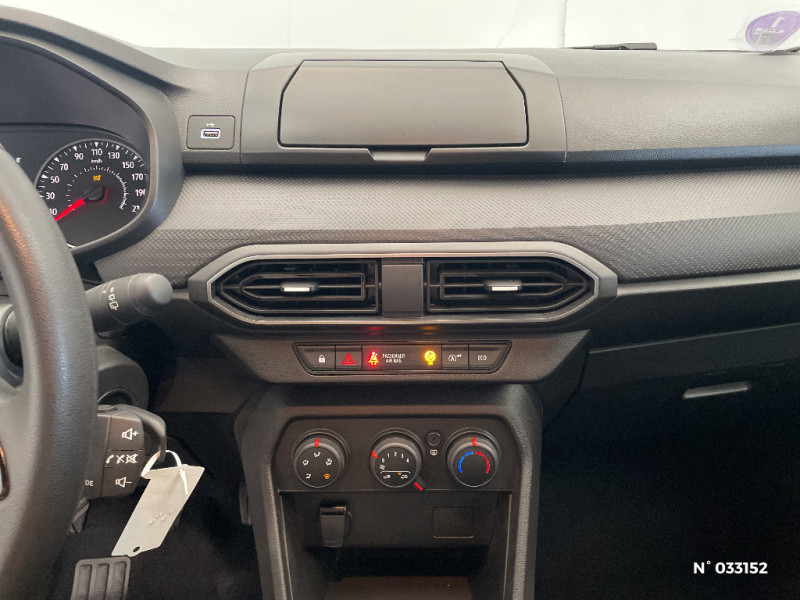 Kit de gonflage / Lève-vitres AR manuels / Volant mousse / Fonction éco-mode / Peinture opaque / Chauffage avec recyclage d'air / Clé 3 boutons / Console basse + rangement ouvert / Cluster TFT / Sellerie essentiel / Media control (Streaming audio bluetooth avec support téléphone, 2 haut-parleurs, 1 USB) / Airbag latéral avant : thorax + rideau / Feux arrières avec signature lumineuse Y / Signature lumineuse DACIA en Y à LED / Rappel de bouclage de ceintures / Système de freinage d'urgence autonome à des vitesses interurbaines 7-170km/h / Nouvelle identité visuelle / Enjoliveur 15'' Elma / Roues tôle 15"