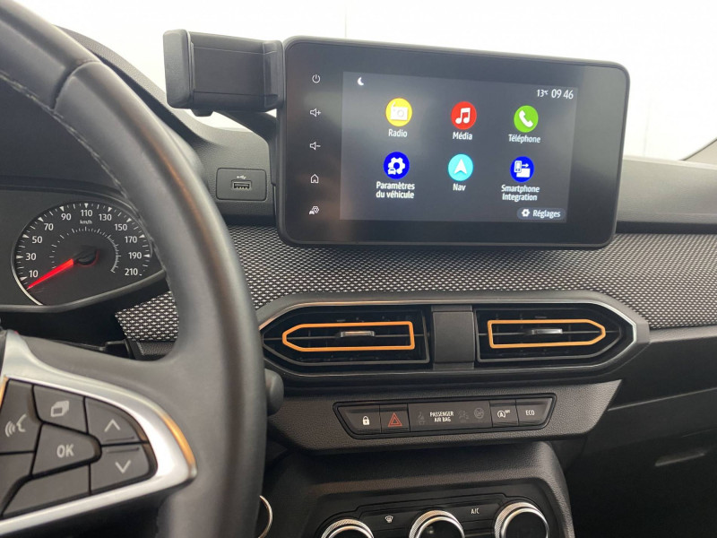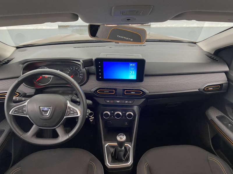 Signature lumineuse DACIA en Y à LED: / Airbag latéral AV : thorax + rideau: / Alerte d'oubli de bouclage des ceintures de sécurité: / Barres de toit modulables: / Cluster TFT: / Clé 3 boutons: / Console basse + rangement ouvert: / Enjoliveur 16'' Saria - Stepway: / Feux AR avec signature lumineuse Y: / Fonction éco-mode: / Harmonie intérieure: / Kit de gonflage: / Media display (écran 8'', réplication smartphone, 4 haut-parleurs, 1 port USB, 1 support téléphone): / Rappel de bouclage de ceintures: / Rétroviseurs extérieurs ton carrosserie: / Système de freinage d'urgence autonome à des vitesses interurbaines 30-140km/h: / Volant Soft Feel TEP: / Sellerie Stepway avec surpiqures: /
