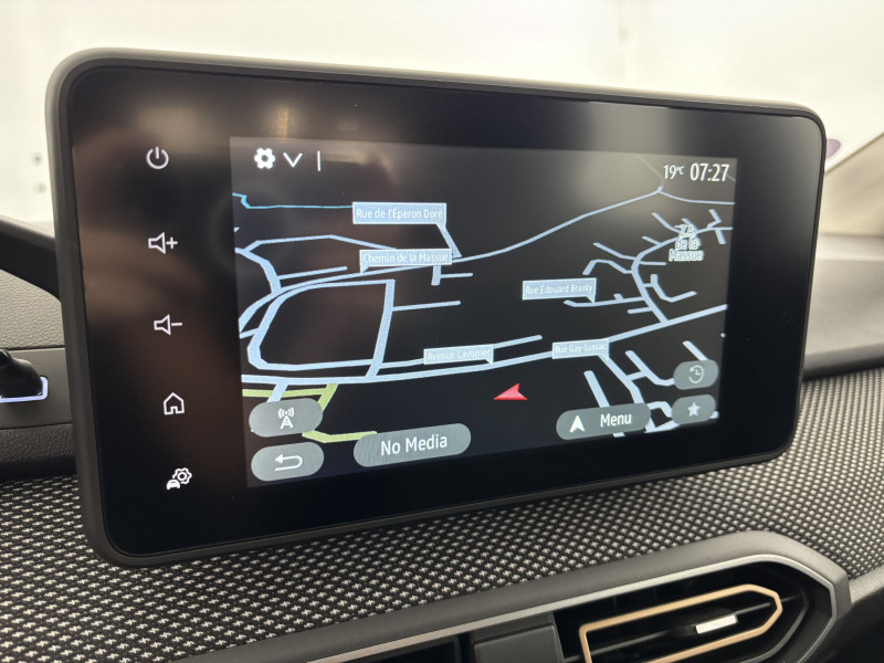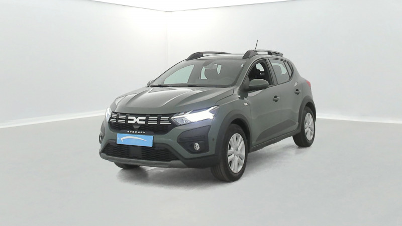 Signature lumineuse DACIA en Y à LED: / Airbag latéral AV : thorax + rideau: / Barres de toit modulables: / Clé 3 boutons: / Console basse + rangement ouvert: / Enjoliveur 16'' Saria - Stepway: / Feux AR avec signature lumineuse Y: / Fonction éco-mode: / Kit de gonflage: / Media display (écran 8'', réplication smartphone, 4 haut-parleurs, 1 port USB): / Nouvelle identité visuelle: / Rappel de bouclage de ceintures: / Système de freinage d'urgence autonome à des vitesses interurbaines 7-170km/h: / Volant Soft Feel TEP: / Sellerie Stepway avec surpiqures: /