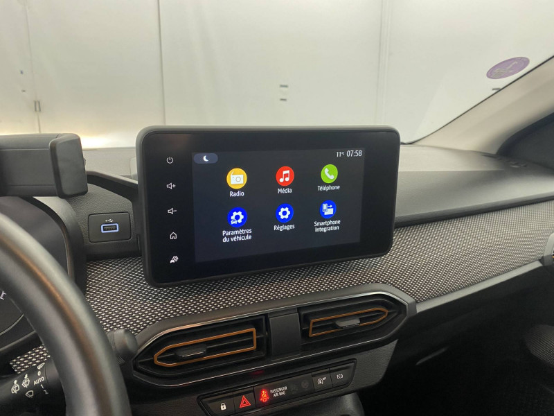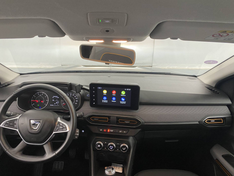 Signature lumineuse DACIA en Y à LED: / Airbag latéral AV : thorax + rideau: / Alerte d'oubli de bouclage des ceintures de sécurité: / Barres de toit modulables: / Cluster TFT: / Clé 3 boutons: / Console basse + rangement ouvert: / Enjoliveur 16'' Saria - Stepway: / Feux AR avec signature lumineuse Y: / Fonction éco-mode: / Harmonie intérieure: / Kit de gonflage: / Media display (écran 8'', réplication smartphone, 4 haut-parleurs, 1 port USB, 1 support téléphone): / Rappel de bouclage de ceintures: / Rétroviseurs extérieurs ton carrosserie: / Système de freinage d'urgence autonome à des vitesses interurbaines 30-140km/h: / Volant Soft Feel TEP: / Sellerie Stepway avec surpiqures: /