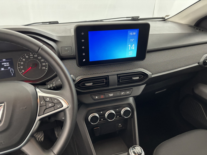 Signature lumineuse DACIA en Y à LED: / Airbag latéral AV : thorax + rideau: / Alternateur renforcé: / Classes énergetiques B: / Cluster TFT: / Clé 3 boutons: / Console basse + rangement ouvert: / Enjoliveur 15'' Sorane: / Feux AR avec signature lumineuse Y: / Fonction éco-mode: / Harmonie intérieure: / Kit de gonflage: / Media display (écran 8'', réplication smartphone, 4 haut-parleurs, 1 port USB): / Rappel de bouclage de ceintures: / Roues tôle 15": / Rétroviseurs extérieurs ton carrosserie: / Système de freinage d'urgence autonome à des vitesses interurbaines 7-170km/h: / Volant Soft Feel TEP: / Sellerie Confort avec surpiqures: /