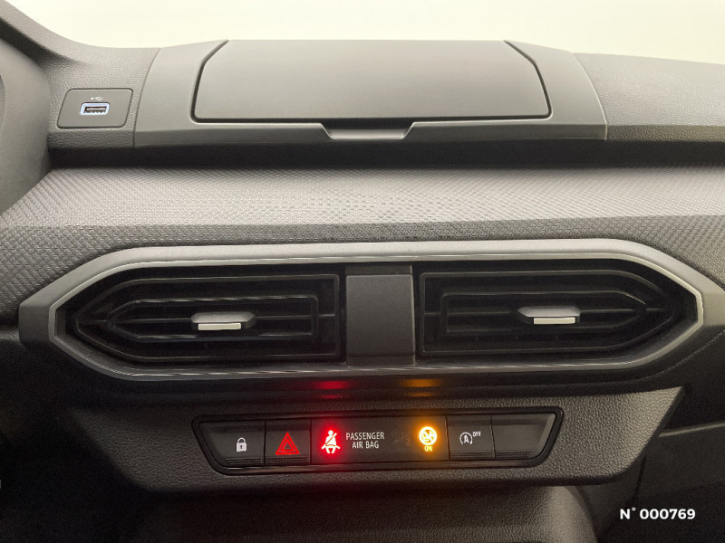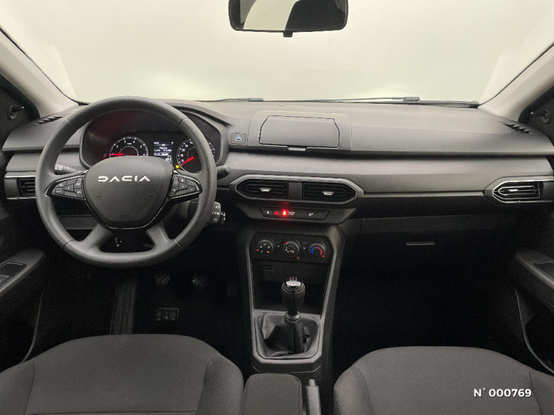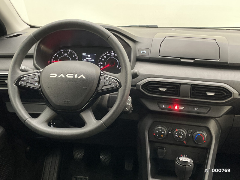 Roues tôle 15" / Feux arrières avec signature lumineuse Y / Signature lumineuse DACIA en Y à LED / Rappel de bouclage de ceintures / Système de freinage d'urgence autonome à des vitesses interurbaines 7-170km/h / Alternateur renforcé / Nouvelle identité visuelle / Enjoliveur 15'' Elma / Volant mousse / Kit de gonflage / Lève-vitres AR manuels / Chauffage avec recyclage d'air / Clé 3 boutons / Console basse + rangement ouvert / Cluster TFT / Sellerie essentiel / Media control (Streaming audio bluetooth avec support téléphone, 2 haut-parleurs, 1 USB) / Airbag latéral avant : thorax + rideau