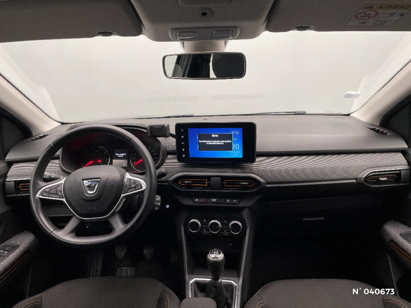 Alerte d'oubli de bouclage des ceintures de sécurité / Clé 3 boutons / Console basse + rangement ouvert / Cluster TFT / Enjoliveur 16'' Saria - Stepway / Harmonie intérieur / Phares de jour LED avec signature lumineuse Y / Projecteurs Full LED avec signature lumineuse Y / Sellerie Stepway avec surpiqures / Peinture opaque / Fonction éco-mode / Kit de gonflage / Rétroviseurs extérieurs ton carrosserie / Volant Soft Feel TEP / Airbag latéral avant : thorax + rideau / Feux arrières avec signature lumineuse Y / Système de freinage d'urgence autonome à des vitesses interurbaines 30-140km/h / Media display (écran 8'', réplication smartphone, 4 haut-parleurs, 1 port USB, 1 support téléphone)