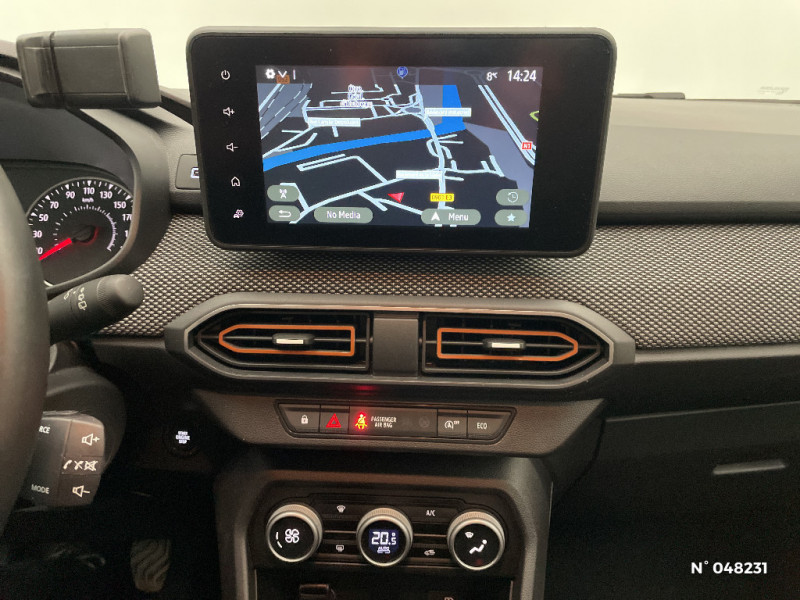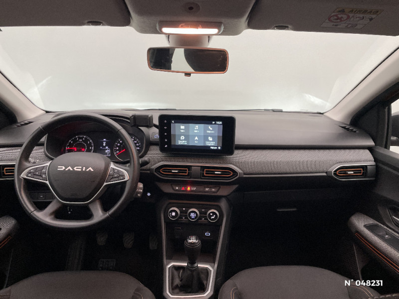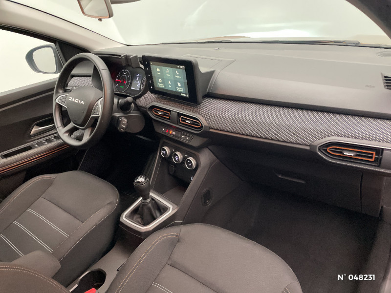 Fonction éco-mode / Kit de gonflage / Peinture opaque / Signature lumineuse DACIA en Y à LED / Rappel de bouclage de ceintures / Plancher de coffre plat / Media NAV (écran 8'' avec réplication, navigation, 6 haut-parleurs, 2 USB) / Console semi-haute + rangement fermé avec accoudoir / Système de freinage d'urgence autonome à des vitesses interurbaines 7-170km/h / Alternateur renforcé / Nouvelle identité visuelle / Cluster TFT / Sellerie Stepway avec surpiqures / Volant Soft Feel TEP / Cartographie Europe de l'Ouest / Airbag latéral avant : thorax + rideau / Feux arrières avec signature lumineuse Y / Mise à jour gratuite pendant 3 ans de la cartographie / Jantes 16'' Mahalia diamantée noir