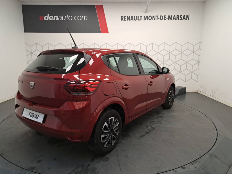 Airbag latéral AV : thorax + rideau / Alternateur renforcé / Classes énergetiques B / Clé 3 boutons / Cluster TFT / Console basse + rangement ouvert / Enjoliveur 15'' Sorane / Feux AR avec signature lumineuse Y / Fonction éco-mode / Harmonie intérieure / Kit de gonflage / Media display (écran 8'', réplication smartphone, 4 haut-parleurs, 1 port USB) / Peinture opaque / Rappel de bouclage de ceintures / Rétroviseurs extérieurs ton carrosserie / Roues tôle 15" / Sellerie Confort avec surpiqures / Signature lumineuse DACIA en Y à LED / Système de freinage d'urgence autonome à des vitesses interurbaines 7-170km/h / Volant Soft Feel TEP