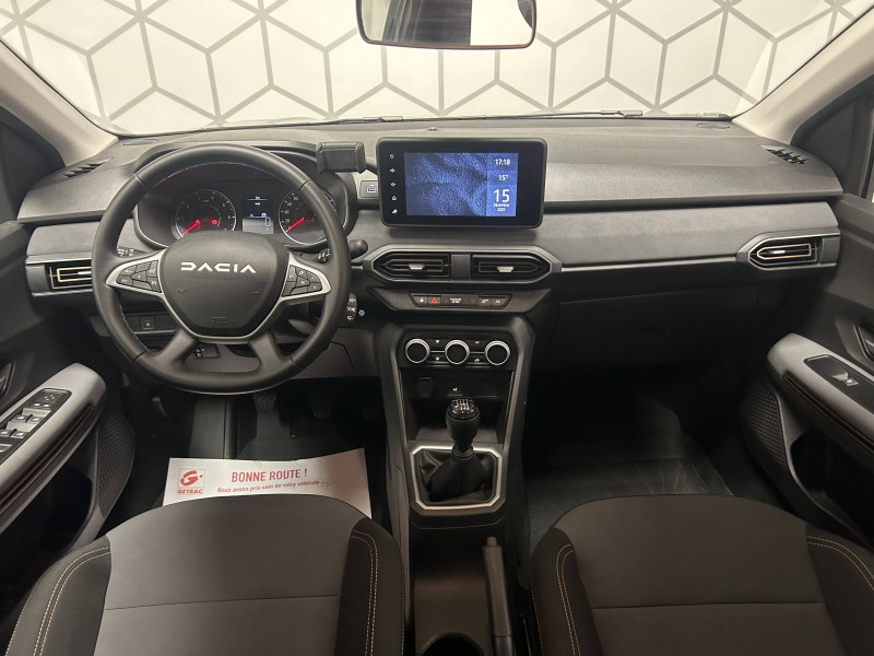 Airbag latéral AV : thorax + rideau / Alerte franchissement de ligne et assistant maintien dans la voie / Antenne requin / Boîte de vitesse manuelle 6 / Console basse + rangement ouvert / Eclairage du coffre / ESP+ASR / Extended Grip / Feux AR avec signature lumineuse Y / Fonction éco-mode / Jantes alluminium 16'' MAHALIA diamantée noir avec cabochon Brun Cuivré / Kit de gonflage / Media Display (écran tactile 8'' sans navigation, radio, réplication smartphone USB, 4 haut-parleurs audiostreaming Bluetooth, satellite de commandes au volant, 1 prise USB-A et 1 prise USB-C) / Plancher de coffre double niveau / Prédisposition Ethylotest / Rappel de bouclage de ceintures / Sellerie spécifique Extreme avec surpiqûres brun cuivré / Signature lumineuse DACIA en Y à LED / Stripping Extreme / Système de freinage d'urgence avancé (pieton, deux-rorues et intersection) / Tableau de bord avec écran numérique 3,5'' et compteurs analogiques / Volant Soft Feel TEP