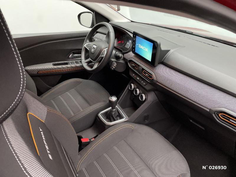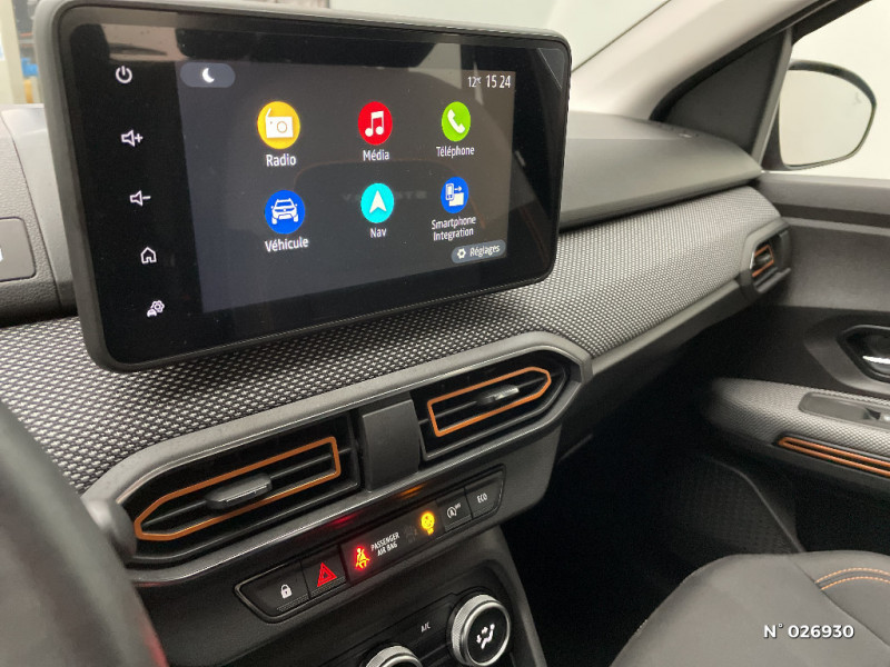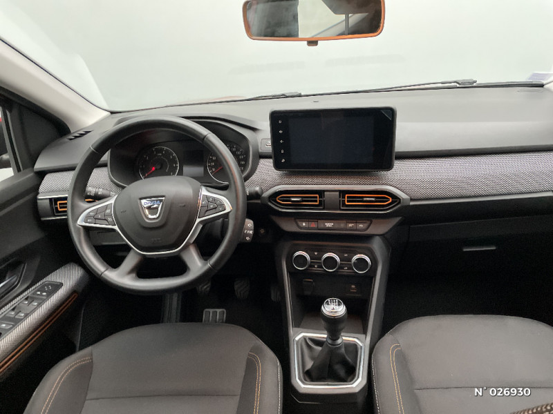 Clé 3 boutons / Console basse + rangement ouvert / Fonction éco-mode / Kit de gonflage / Airbag latéral avant : thorax + rideau / Feux arrières avec signature lumineuse Y / Système de freinage d'urgence autonome à des vitesses interurbaines 30-140km/h / Media display (écran 8'', réplication smartphone, 4 haut-parleurs, 1 port USB, 1 support téléphone) / Signature lumineuse DACIA en Y à LED / Rappel de bouclage de ceintures / Alerte d'oubli de bouclage des ceintures de sécurité / Cluster TFT / Enjoliveur 16'' Saria - Stepway / Harmonie intérieur / Phares de jour LED avec signature lumineuse Y / Projecteurs Full LED avec signature lumineuse Y / Sellerie Stepway avec surpiqures / Volant Soft Feel TEP / Rétroviseurs extérieurs ton carrosserie / Peinture opaque