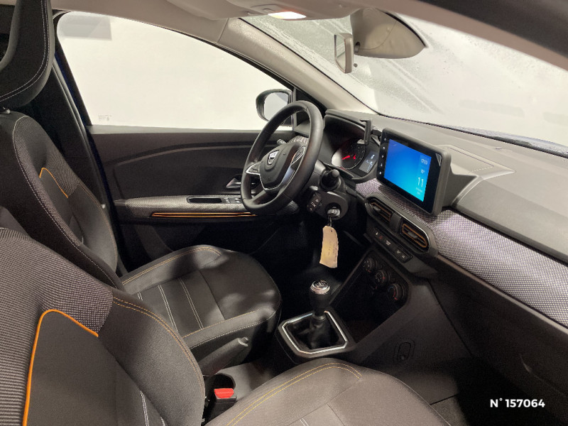 Peinture opaque / Feux arrières avec signature lumineuse Y / Système de freinage d'urgence autonome à des vitesses interurbaines 30-140km/h / Media display (écran 8'', réplication smartphone, 4 haut-parleurs, 1 port USB, 1 support téléphone) / Signature lumineuse DACIA en Y à LED / Rappel de bouclage de ceintures / Plancher de coffre plat / Media display (écran 8'', réplication smartphone, 4 haut-parleurs, 1 port USB) / Système de freinage d'urgence autonome à des vitesses interurbaines 7-170km/h / Classes énergetiques B / Airbag latéral avant : thorax + rideau / Kit de gonflage / Rétroviseurs extérieurs ton carrosserie / Clé 3 boutons / Console basse + rangement ouvert / Cluster TFT / Enjoliveur 16'' Saria - Stepway / Harmonie intérieur / Sellerie Stepway avec surpiqures / Volant Soft Feel TEP / Fonction éco-mode