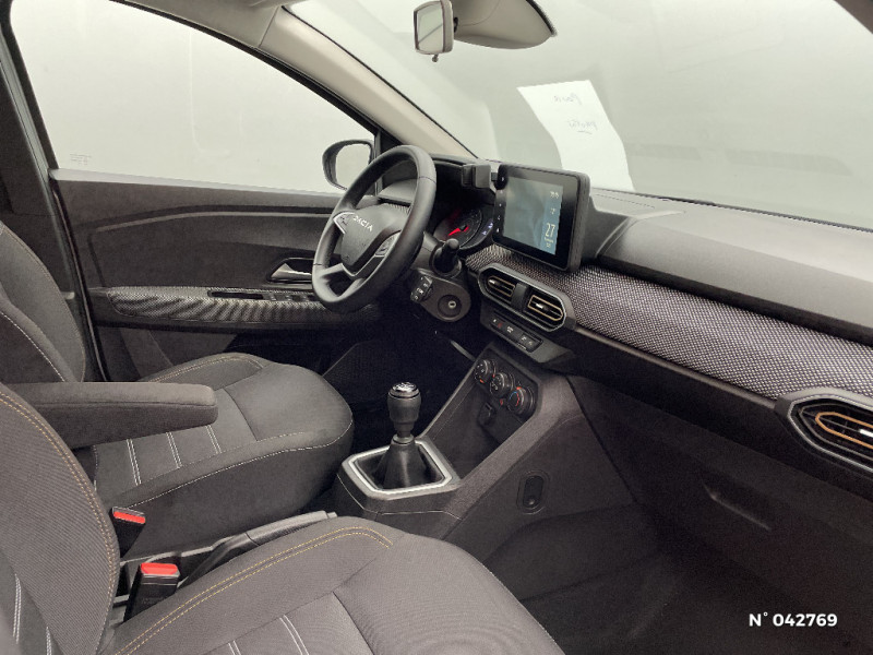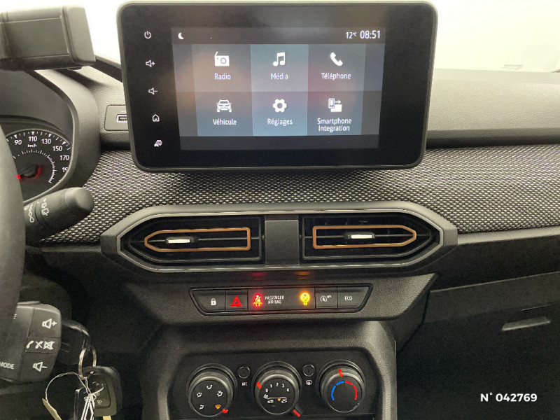 Fonction éco-mode / Eclairage du coffre / Kit de gonflage / Rétroviseurs extérieurs ton carrosserie / Nouvelle identité visuelle / Tableau de bord avec écran numérique 3,5'' et compteurs analogiques / Système de freinage d'urgence avancé (pieton, deux-rorues et intersection) / Prédisposition Ethylotest / Alerte franchissement de ligne et assistant maintien dans la voie / Enjoliveur 16'' ATARA DARK / Media Display (écran tactile 8'' sans navigation, radio, réplication smartphone USB, 4 haut-parleurs audiostreaming Bluetooth, satellite de commandes au volant, 1 prise USB-A et 1 prise USB-C) / Clé 3 boutons / Console basse + rangement ouvert / Sellerie Stepway avec surpiqures / Volant Soft Feel TEP / Airbag latéral avant : thorax + rideau / Feux arrières avec signature lumineuse Y / Signature lumineuse DACIA en Y à LED / Rappel de bouclage de ceintures