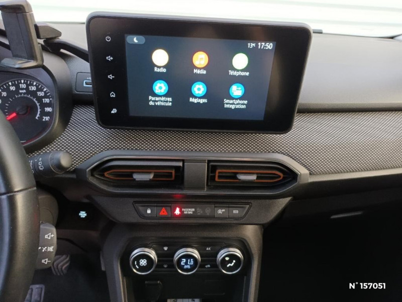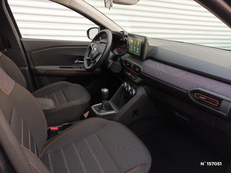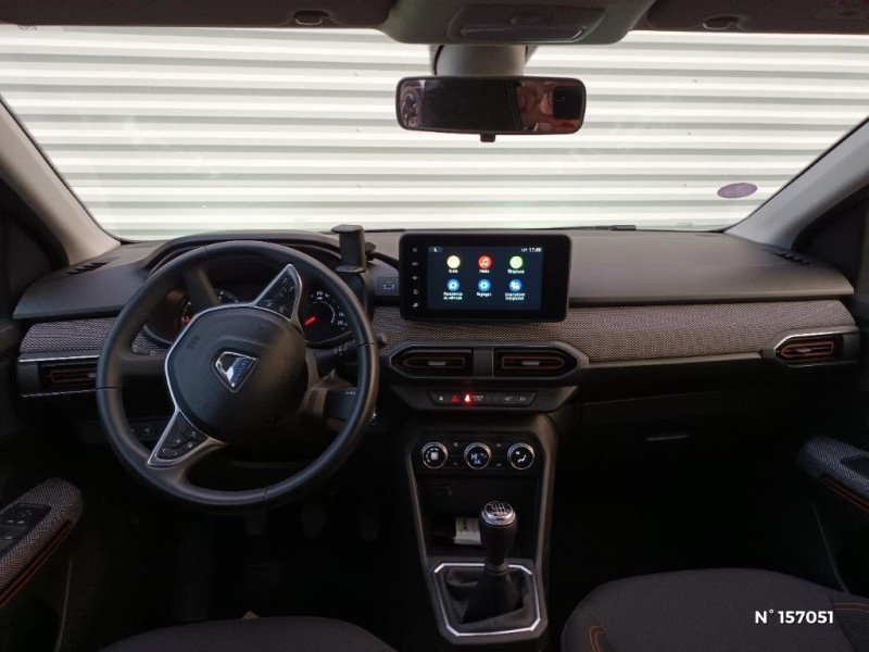 Système de freinage d'urgence autonome à des vitesses interurbaines 30-140km/h / Media display (écran 8'', réplication smartphone, 4 haut-parleurs, 1 port USB, 1 support téléphone) / Signature lumineuse DACIA en Y à LED / Clé 3 boutons / Console basse + rangement ouvert / Cluster TFT / Enjoliveur 16'' Saria - Stepway / Harmonie intérieur / Sellerie Stepway avec surpiqures / Volant Soft Feel TEP / Rappel de bouclage de ceintures / Plancher de coffre plat / Media display (écran 8'', réplication smartphone, 4 haut-parleurs, 1 port USB) / Système de freinage d'urgence autonome à des vitesses interurbaines 7-170km/h / Alternateur renforcé / Classes énergetiques B / Fonction éco-mode / Kit de gonflage / Rétroviseurs extérieurs ton carrosserie / Peinture opaque / Airbag latéral avant : thorax + rideau / Feux arrières avec signature lumineuse Y
