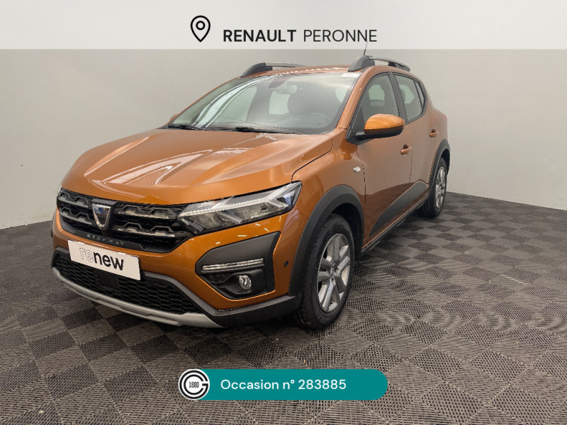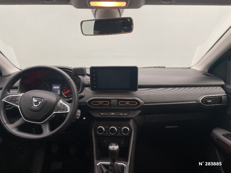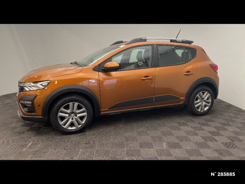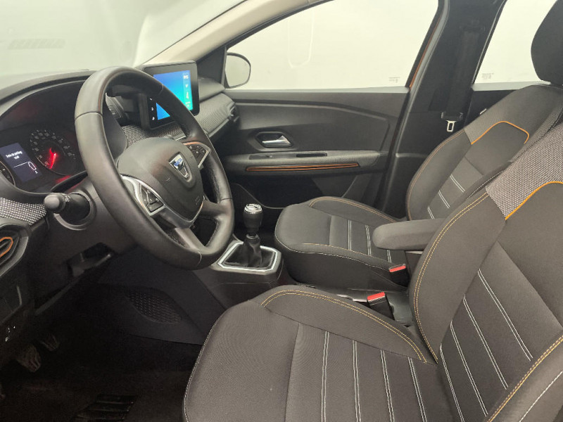 Cluster TFT / Enjoliveur 16'' Saria - Stepway / Harmonie intérieur / Sellerie Stepway avec surpiqures / Volant Soft Feel TEP / Airbag latéral avant : thorax + rideau / Feux arrières avec signature lumineuse Y / Signature lumineuse DACIA en Y à LED / Rappel de bouclage de ceintures / Plancher de coffre plat / Media display (écran 8'', réplication smartphone, 4 haut-parleurs, 1 port USB) / Système de freinage d'urgence autonome à des vitesses interurbaines 7-170km/h / Alternateur renforcé / Classes énergetiques B / Fonction éco-mode / Kit de gonflage / Rétroviseurs extérieurs ton carrosserie / Clé 3 boutons / Console basse + rangement ouvert