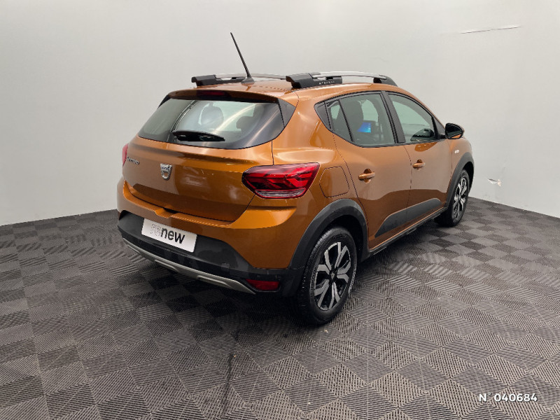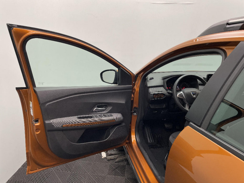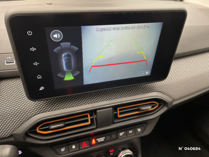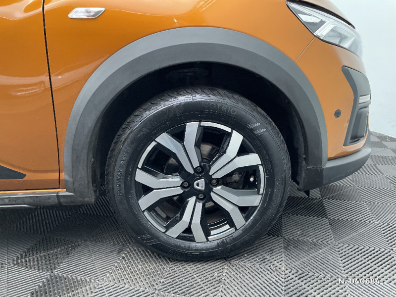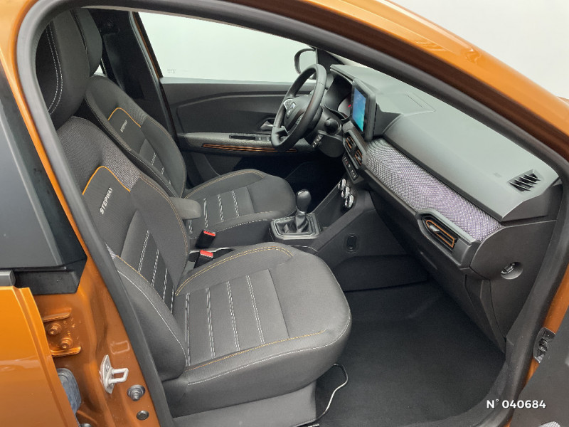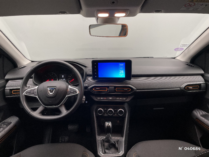 Alerte d'oubli de bouclage des ceintures de sécurité / Clé 3 boutons / Console basse + rangement ouvert / Cluster TFT / Enjoliveur 16'' Saria - Stepway / Fonction éco-mode / Kit de gonflage / Rétroviseurs extérieurs ton carrosserie / Harmonie intérieur / Sellerie Stepway avec surpiqures / Volant Soft Feel TEP / Airbag latéral avant : thorax + rideau / Feux arrières avec signature lumineuse Y / Système de freinage d'urgence autonome à des vitesses interurbaines 30-140km/h / Media display (écran 8'', réplication smartphone, 4 haut-parleurs, 1 port USB, 1 support téléphone) / Signature lumineuse DACIA en Y à LED / Rappel de bouclage de ceintures / Plancher de coffre plat / Media display (écran 8'', réplication smartphone, 4 haut-parleurs, 1 port USB) / Système de freinage d'urgence autonome à des vitesses interurbaines 7-170km/h / Classe energetique C