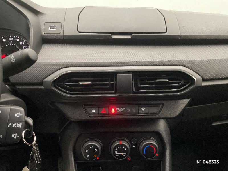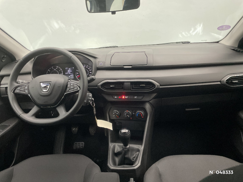 Kit de gonflage / Lève-vitres AR manuels / Roues tôle 15" / Chauffage avec recyclage d'air / Clé 3 boutons / Console basse + rangement ouvert / Cluster TFT / Harmonie intérieure / Sellerie essentiel / Media control (Streaming audio bluetooth avec support téléphone, 2 haut-parleurs, 1 USB) / Volant mousse / Rappel de bouclage de ceintures / Enjoliveur 15'' Elma / Système de freinage d'urgence autonome à des vitesses interurbaines 7-170km/h / Alternateur renforcé / Classes énergetiques B / Airbag latéral avant : thorax + rideau / Feux arrières avec signature lumineuse Y / Signature lumineuse DACIA en Y à LED