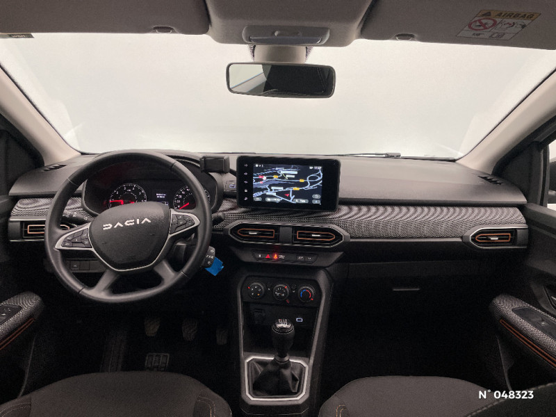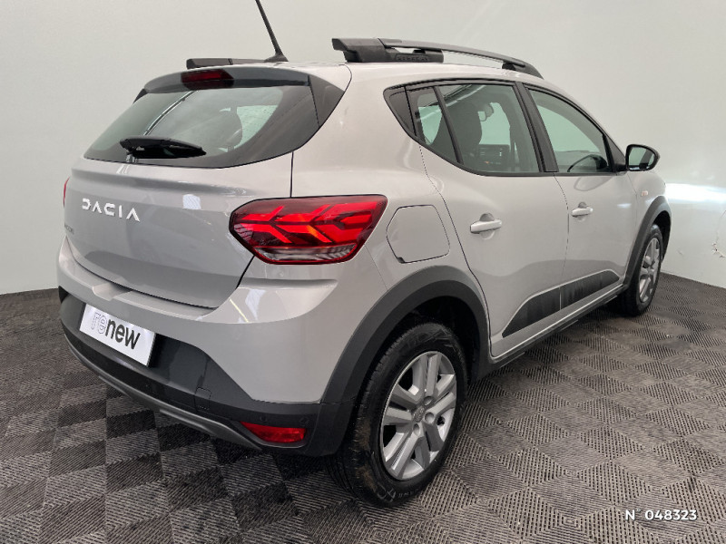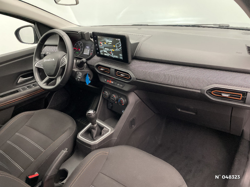 Clé 3 boutons / Console basse + rangement ouvert / Cluster TFT / Sellerie Stepway avec surpiqures / Volant Soft Feel TEP / Airbag latéral avant : thorax + rideau / Feux arrières avec signature lumineuse Y / Signature lumineuse DACIA en Y à LED / Kit de gonflage / Peinture opaque / Fonction éco-mode / Rappel de bouclage de ceintures / Plancher de coffre plat / Media display (écran 8'', réplication smartphone, 4 haut-parleurs, 1 port USB) / Système de freinage d'urgence autonome à des vitesses interurbaines 7-170km/h / Nouvelle identité visuelle / Enjoliveur 16'' Saria - Stepway / Enjoliveur 16'' Saria