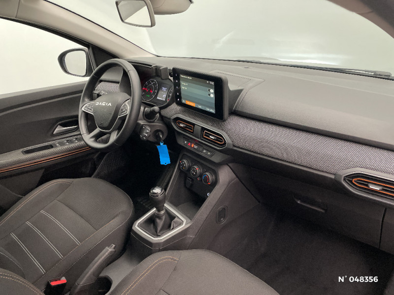 Kit de gonflage / Peinture opaque / Clé 3 boutons / Console basse + rangement ouvert / Cluster TFT / Sellerie Stepway avec surpiqures / Volant Soft Feel TEP / Airbag latéral avant : thorax + rideau / Feux arrières avec signature lumineuse Y / Signature lumineuse DACIA en Y à LED / Rappel de bouclage de ceintures / Plancher de coffre plat / Media display (écran 8'', réplication smartphone, 4 haut-parleurs, 1 port USB) / Système de freinage d'urgence autonome à des vitesses interurbaines 7-170km/h / Nouvelle identité visuelle / Enjoliveur 16'' Saria - Stepway / Enjoliveur 16'' Saria / Fonction éco-mode