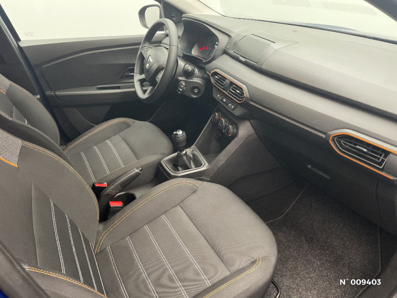 Sellerie Stepway avec surpiqures / Système de freinage d'urgence autonome à des vitesses interurbaines 30-140km/h / Système de freinage d'urgence autonome à des vitesses interurbaines 7-170km/h / Volant mousse / Airbag latéral AV : thorax + rideau / Classes énergetiques B / Clé 3 boutons / Cluster TFT / Console basse + rangement ouvert / Enjoliveur 16'' Saria - Stepway / Feux AR avec signature lumineuse Y / Fonction éco-mode / Harmonie intérieure / Kit de gonflage / Media control (Streaming audio bluetooth avec support téléphone, 2 haut-parleurs, 1 USB) / Rappel de bouclage de ceintures / Signature lumineuse DACIA en Y à LED